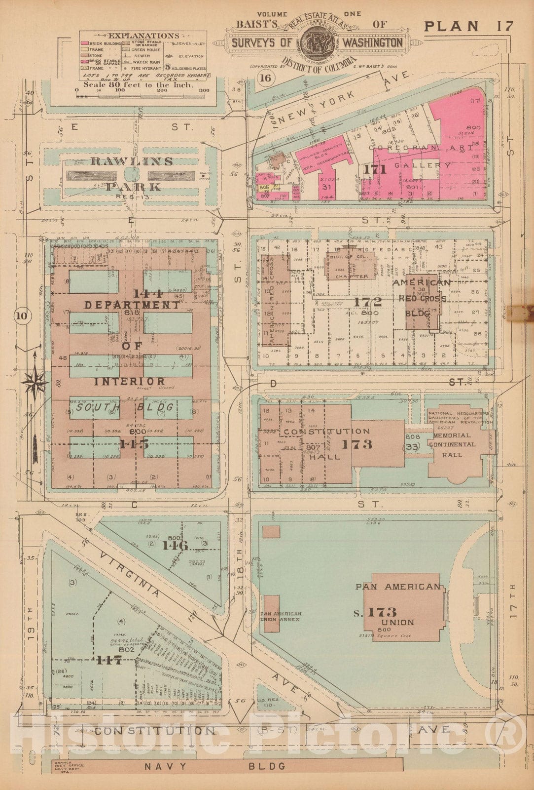 Historic Map : Atlas of Washington D.C. Volume 1 (Inner NW), Washington 1939 Plate 017 , Vintage Wall Art