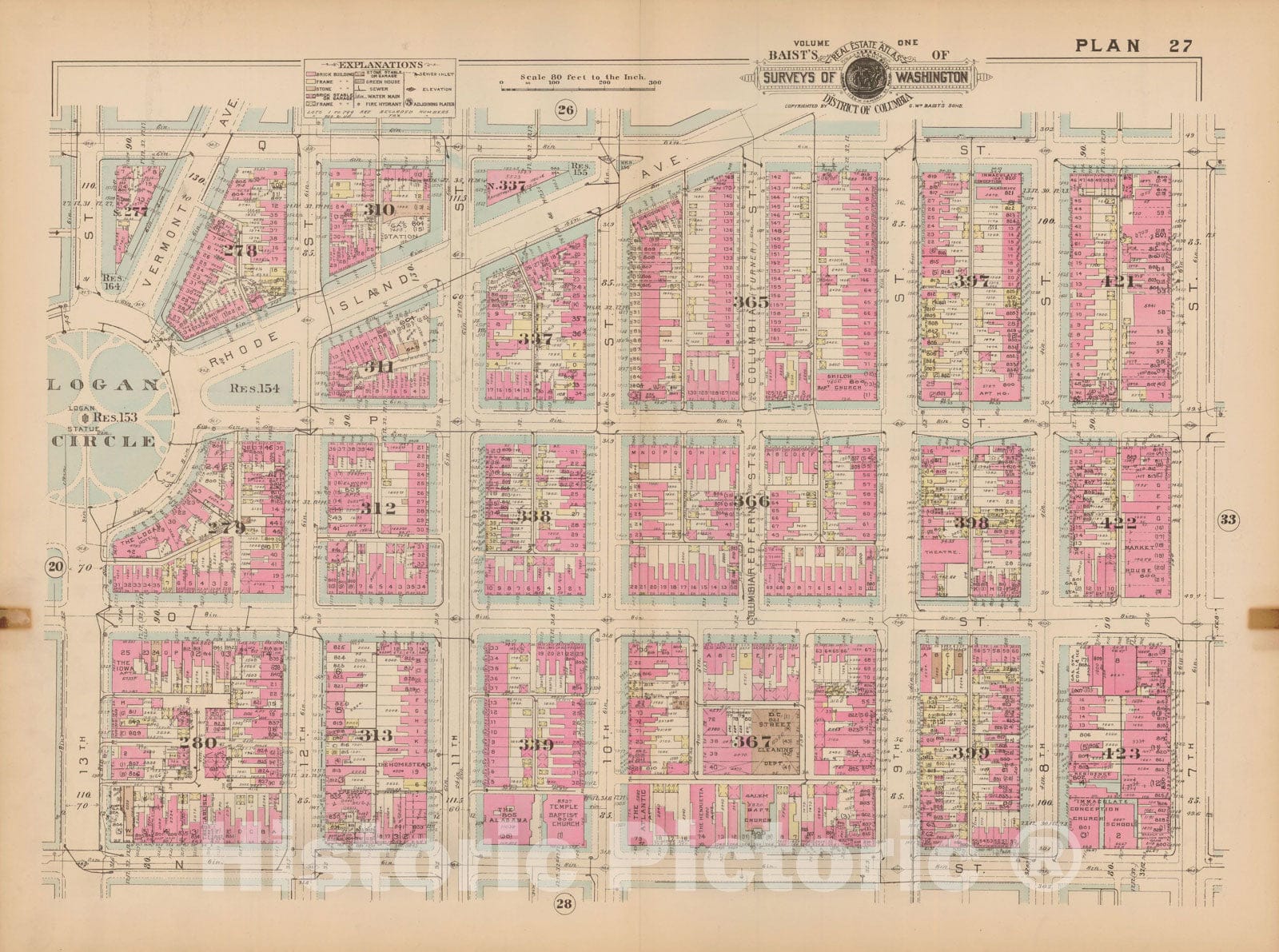 Historic Map : Atlas of Washington D.C. Volume 1 (Inner NW), Washington 1939 Plate 027 , Vintage Wall Art