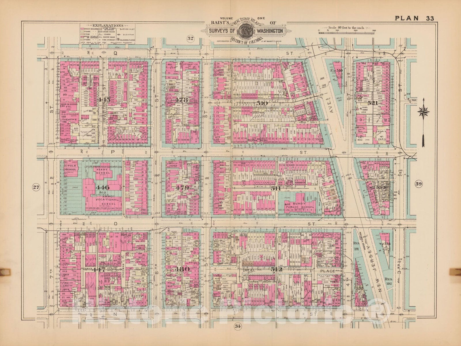 Historic Map : Atlas of Washington D.C. Volume 1 (Inner NW), Washington 1939 Plate 033 , Vintage Wall Art