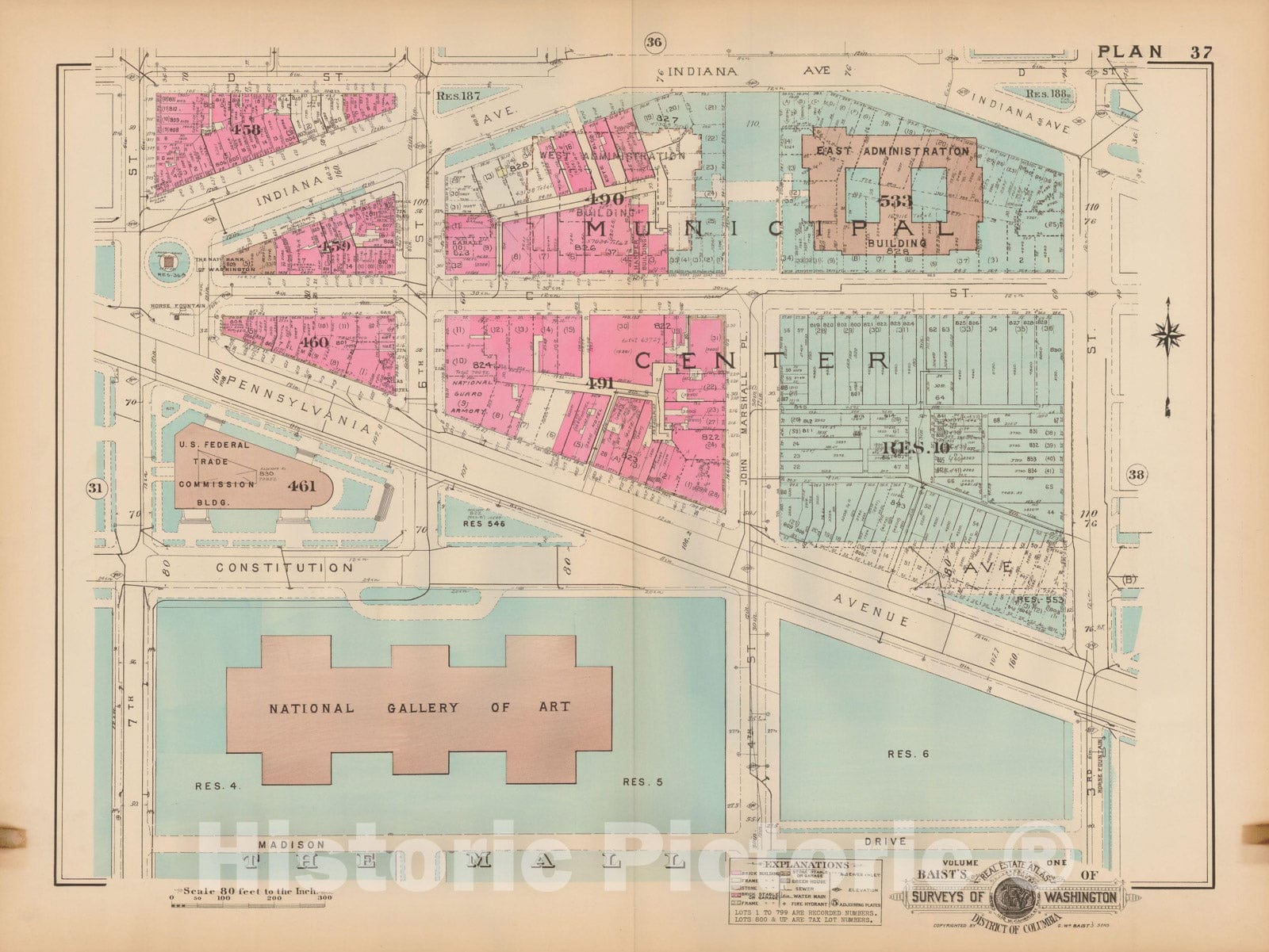 Historic Map : Atlas of Washington D.C. Volume 1 (Inner NW), Washington 1939 Plate 037 , Vintage Wall Art