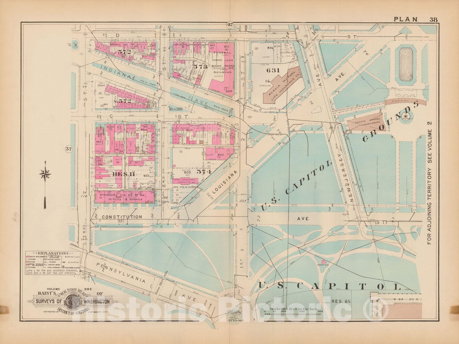 Historic Map : Atlas of Washington D.C. Volume 1 (Inner NW), Washington 1939 Plate 038 , Vintage Wall Art