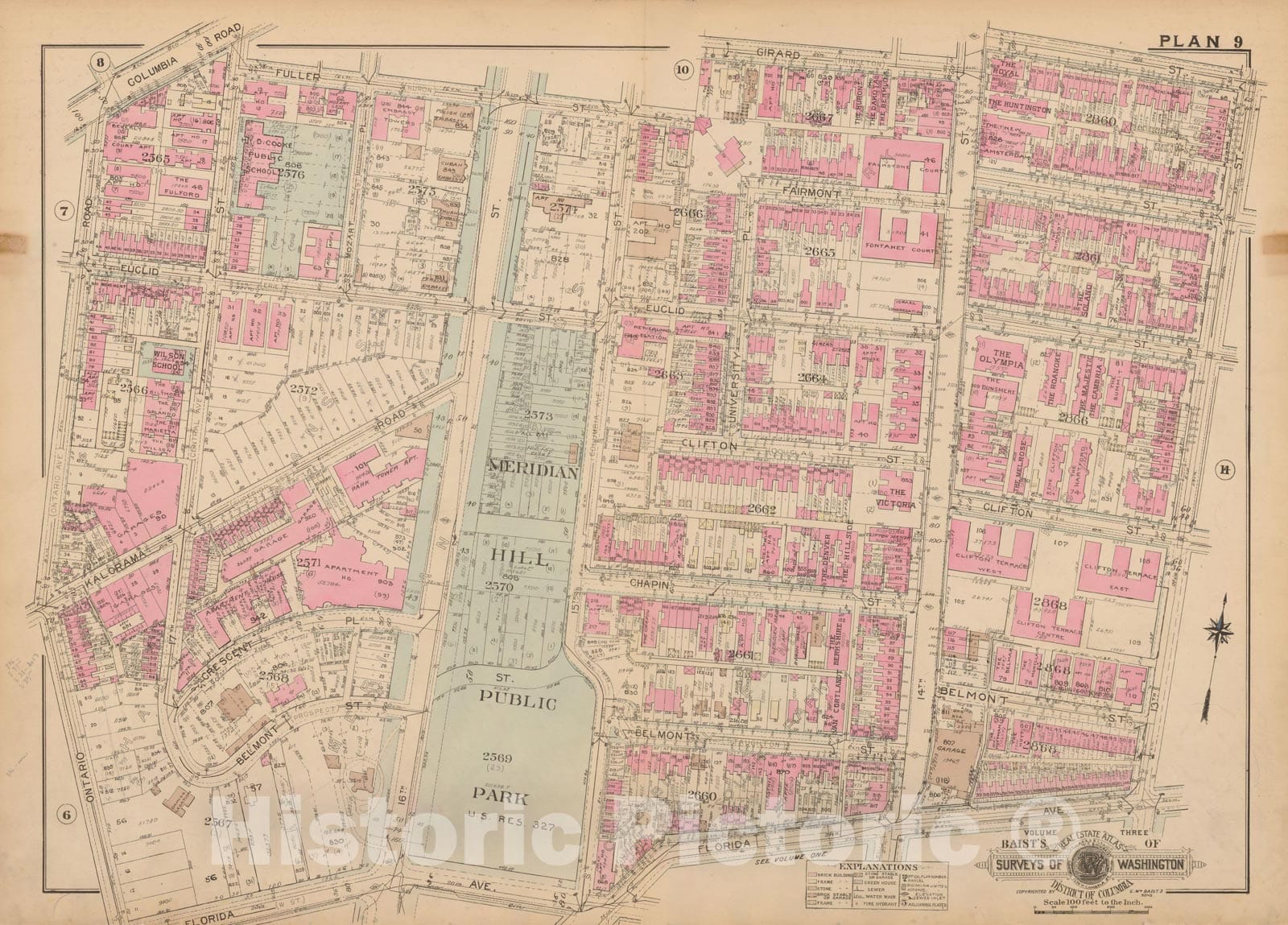 Historic Map : Atlas of Washington D.C. Volume 3 (Outer NW), Washington 1937 Plate 009 , Vintage Wall Art