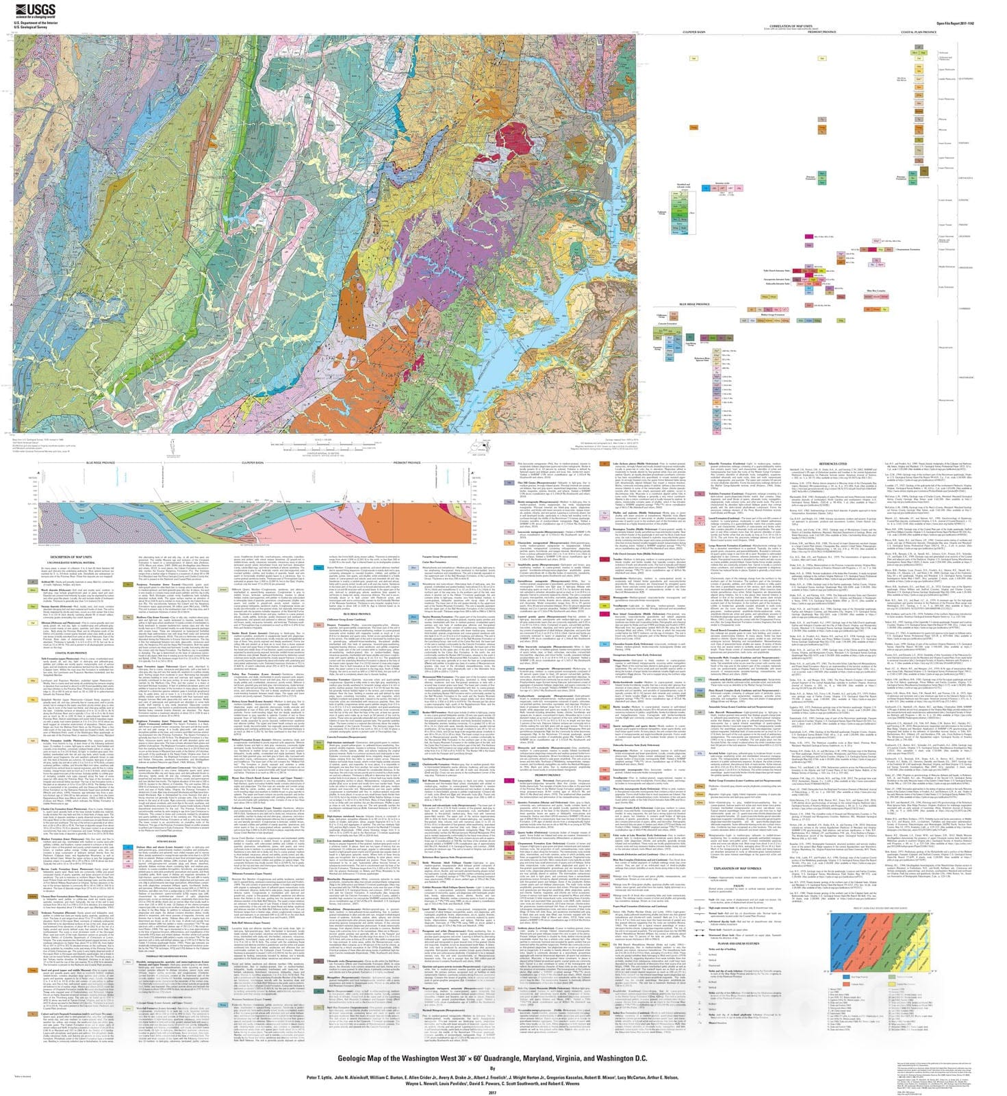 Map : Geologic map of the Washington West 30’ × 60’ quadrangle, Maryland, Virginia, and Washington D.C., 2017 Cartography Wall Art :