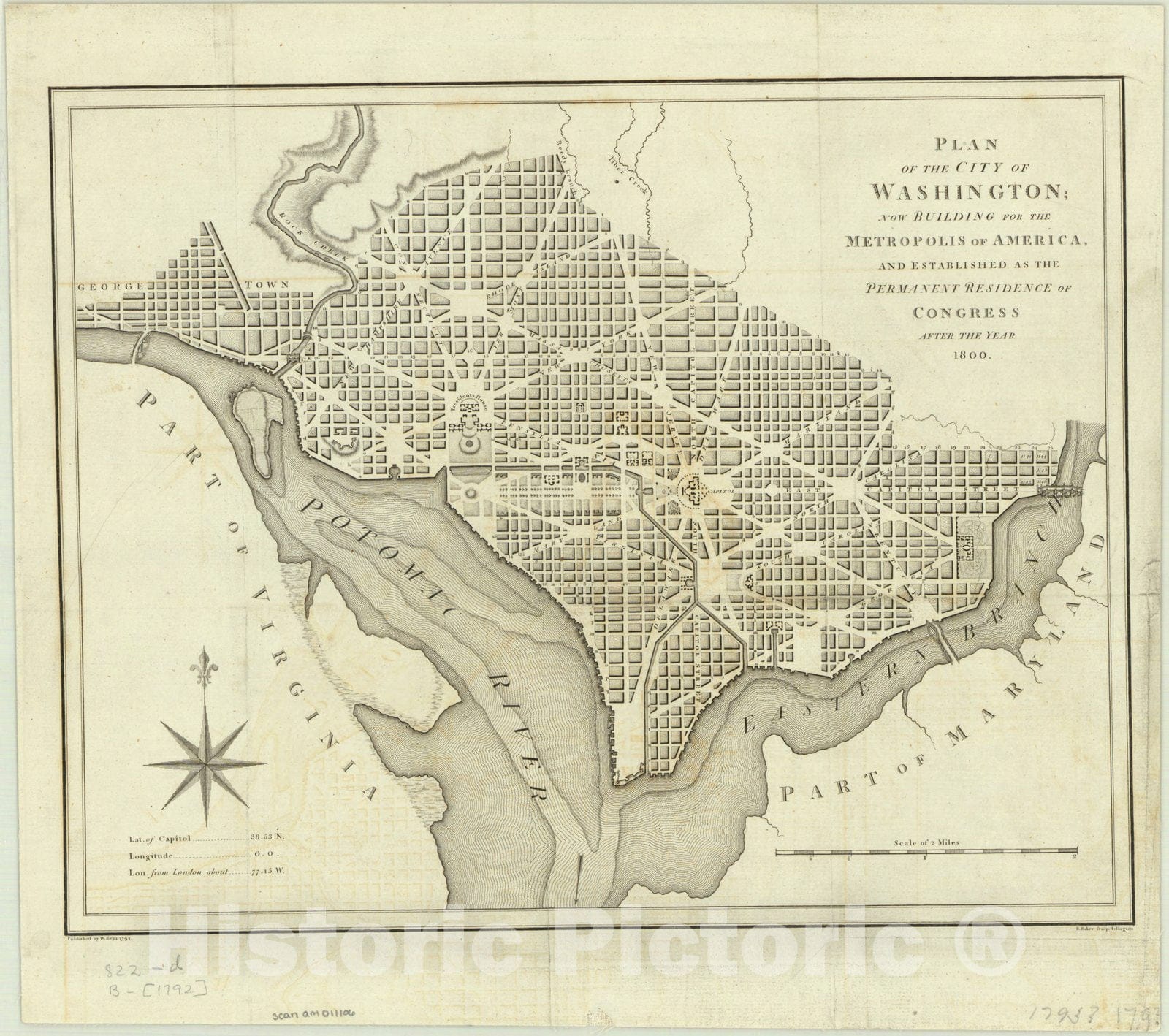 Map : Washington D.C. 1793, Antique Vintage Reproduction