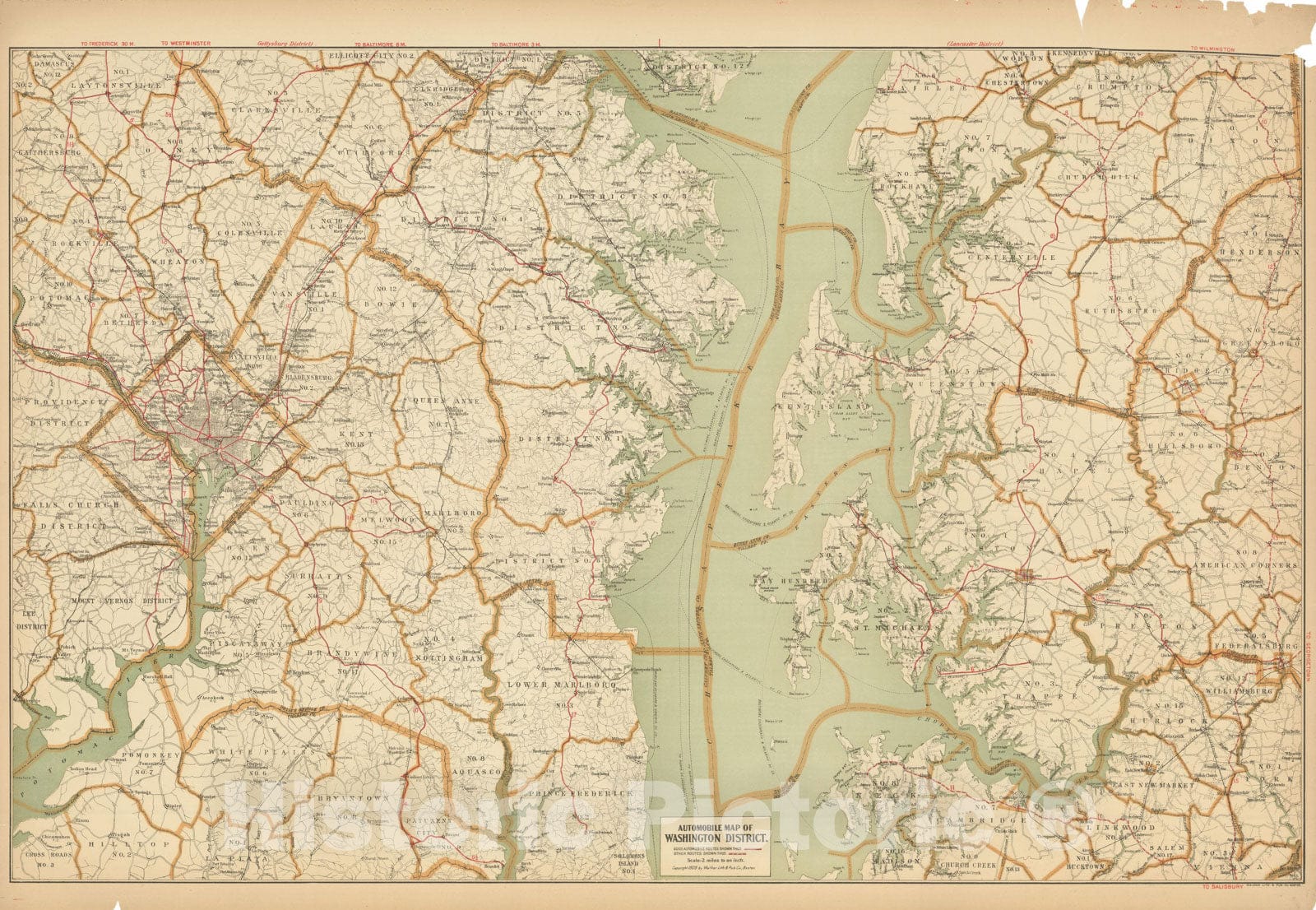 Historic Map : Washington D.C. (Dist. of Columbia), Automobile Map of Washington District 1910 , Vintage Wall Art