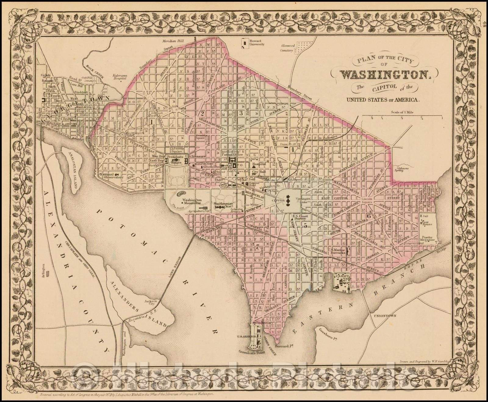 Historic Map - Plan of the City of Washington. The Capitol of the United States of America, 1879, Samuel Augustus Mitchell Jr. - Vintage Wall Art