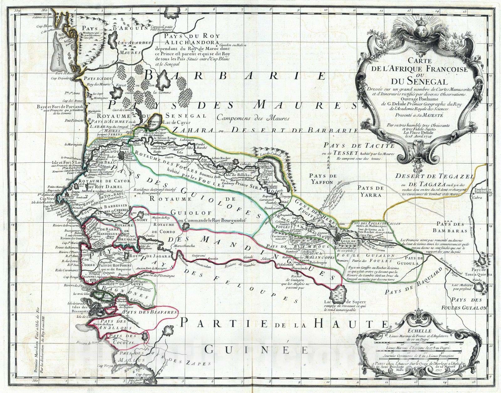 • .Historic Map : Africa, West 1727 Afrique Francoise ou du Senegal. , Vintage Wall Art