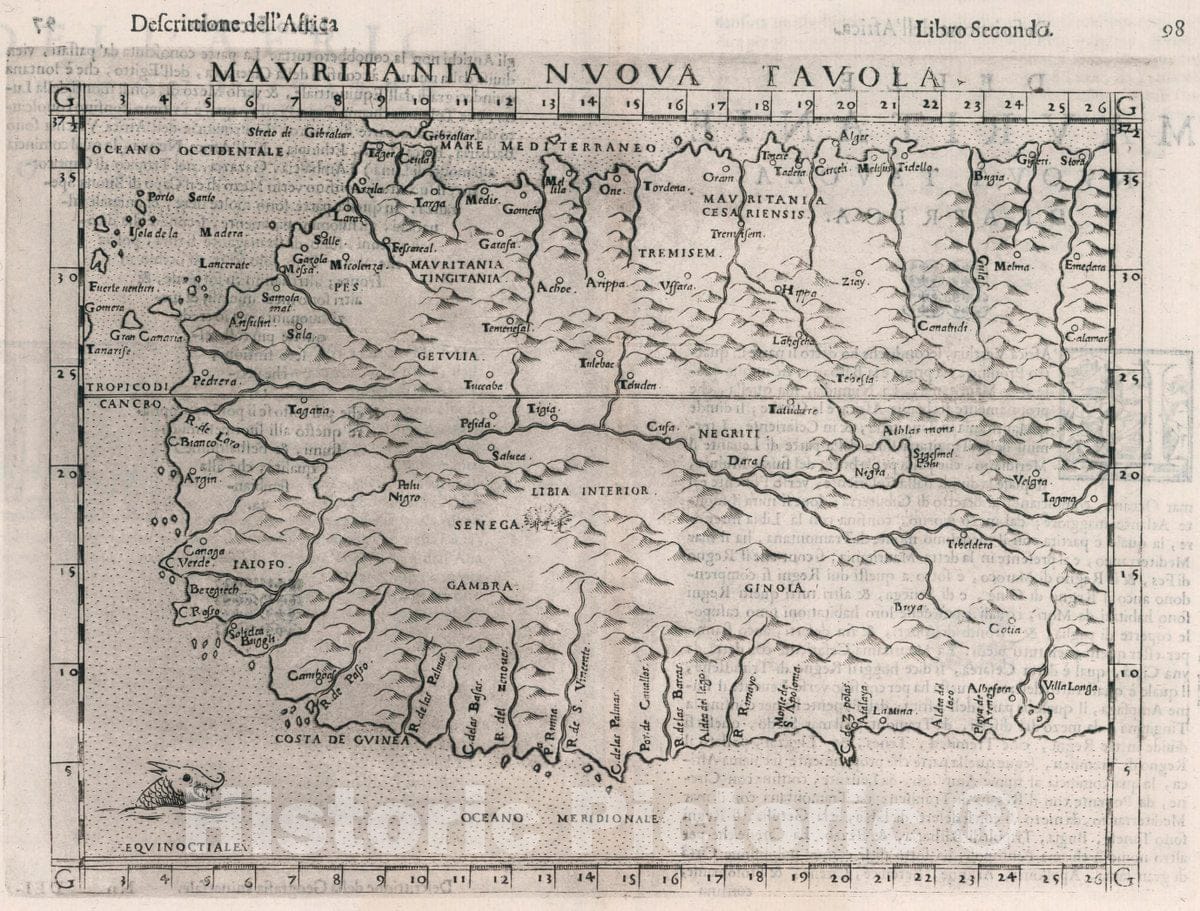 Africa, West Mavritania Nvova tavola. Descrittione dell' Africa. Libro Secondo, 1599 Atlas , Vintage Wall Art