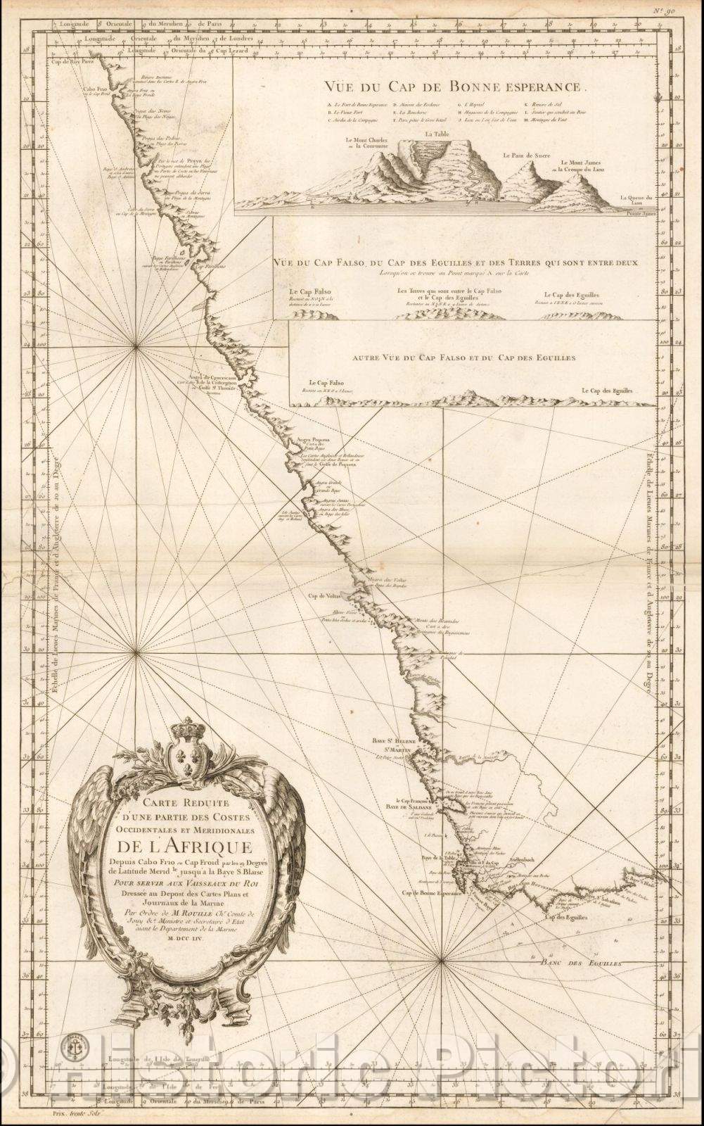 Historic Map - Carte Reduite d'une Partie des Costes Occidentales et Meridionales de l'Af :: West Costes and southern Africa from Cabo Frio an, 1753 - Vintage Wall Art