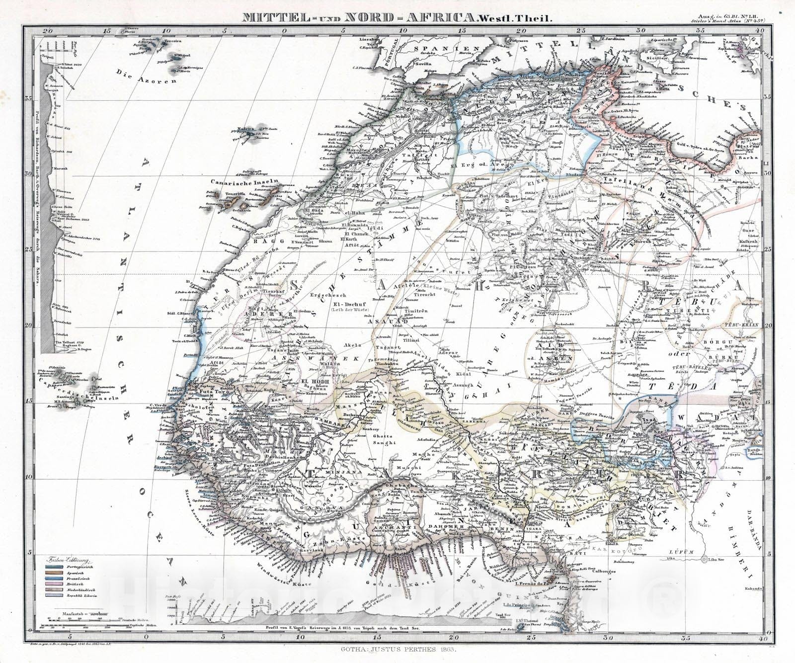 Central Africa 1863 Mittel - und Nord-Afrika. (West and North Africa). , Vintage Wall Art
