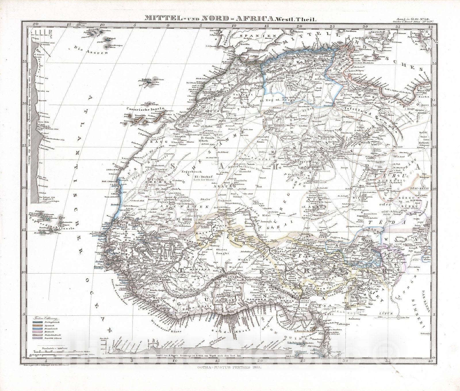 Central Africa 1863 Mittel - und Nord-Afrika. (West and Central Africa). , Vintage Wall Art