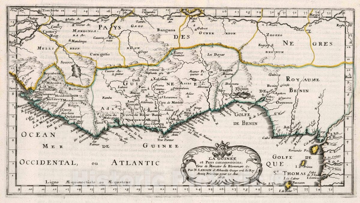 Historic Map : Guinea, Africa, West 1656 La Guinee et Pays circomvoisins , Vintage Wall Art