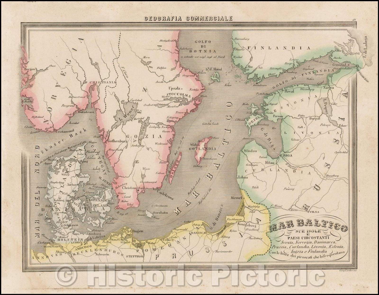 Mar Baltico sue Isole E Paesi Circostanti Suezia, Norvegia, Danimarca, Prussia, Curlandia / Map of Northern and Western Africa, 1850