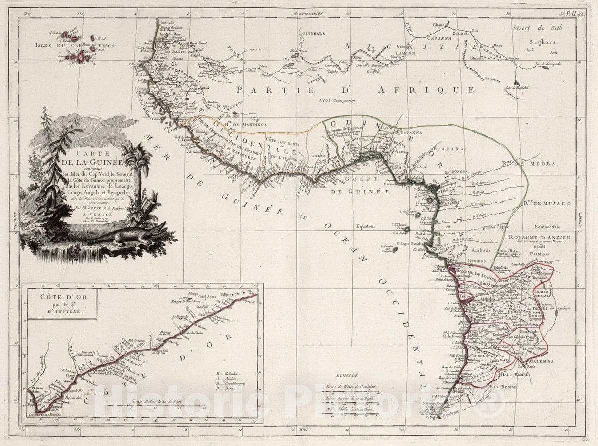 • .Historic Map : Nigeria, West Africa 42. Carte de la Guinee, 1779 Atlas , Vintage Wall Art