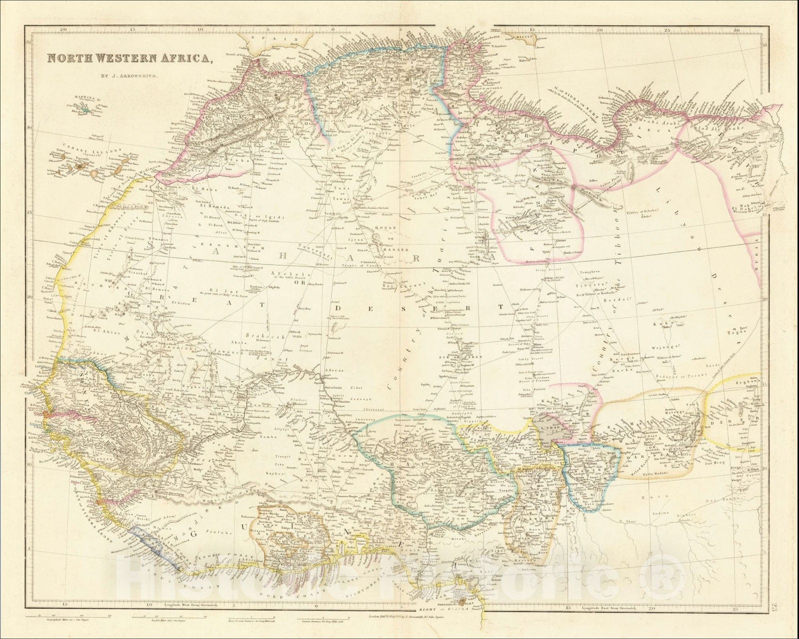 • .Historic Map : North Western Africa, 1861, John Arrowsmith, Vintage Wall Art
