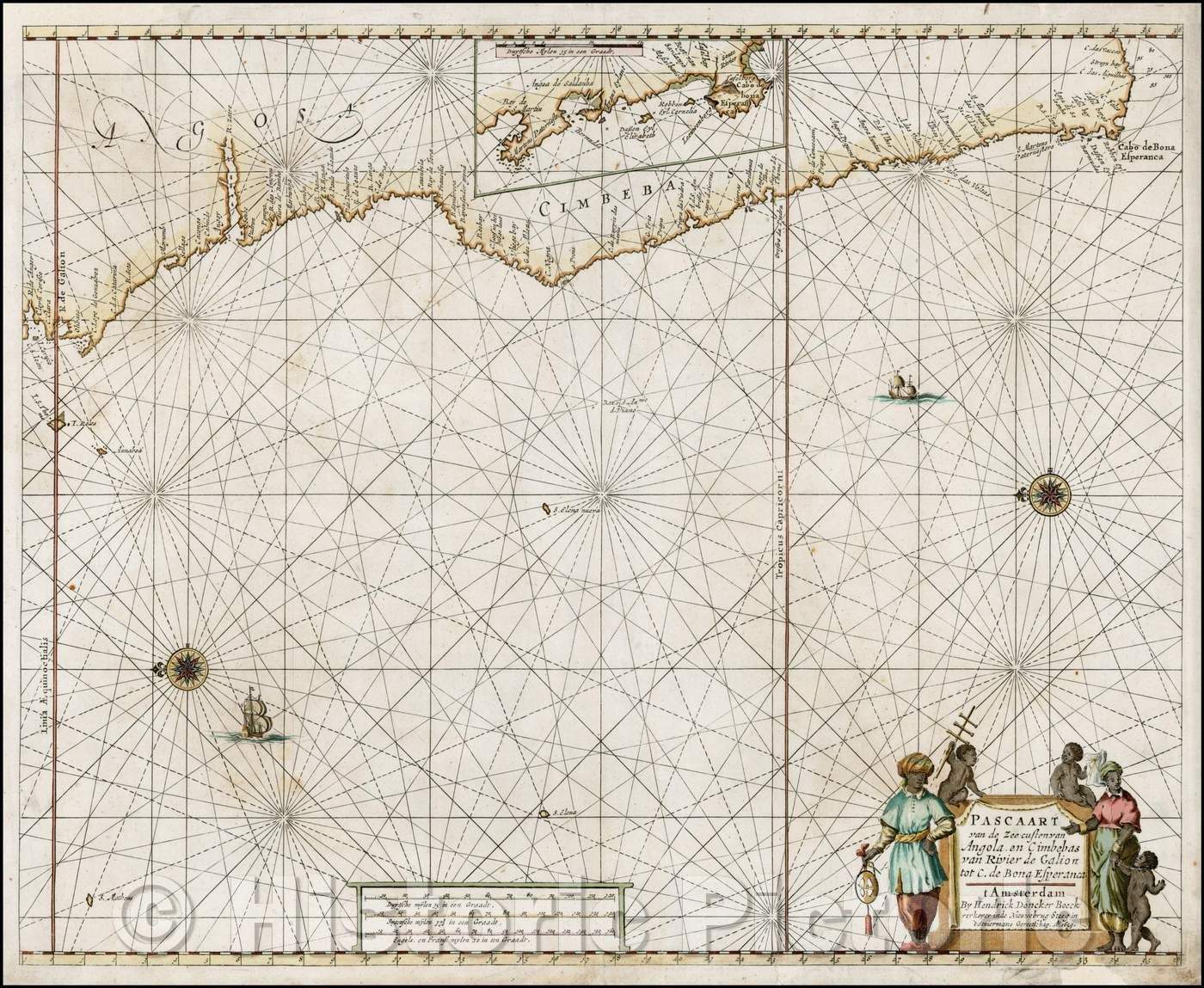 Historic Map - Pascaart van de Zee custenvan Angola en Cimbeb/Doncker's Sea Chart of the West Coast of Africa, from Angola,Cape of Good Hope, 1659 - Vintage Wall Art