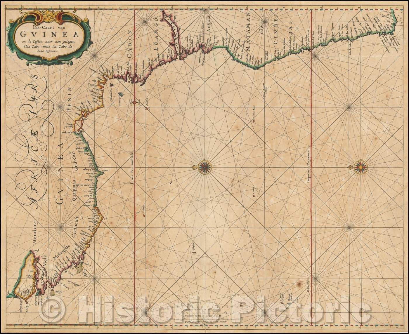 Historic Map - Pas-Caart van Guinea en de Custen daer aen gelegen Van Cabo verde tot Cabo de Bona Esperanca :: Chart of the west coast of Africa,Guinea Coast, 1650 - Vintage Wall Art