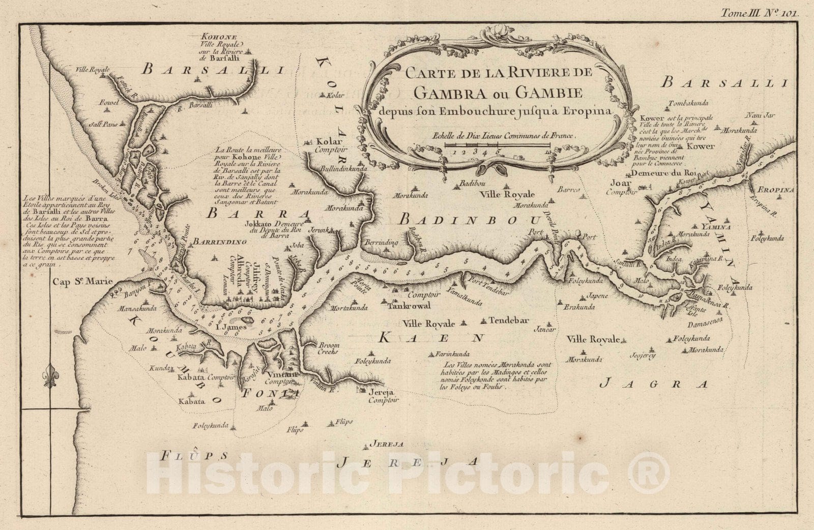 Senegal; Gambia, West Africa 1764 Carte De La Riviere De Gambra ou Gambie : depuis son Embouchure jusqua Eropina , Vintage Wall Art