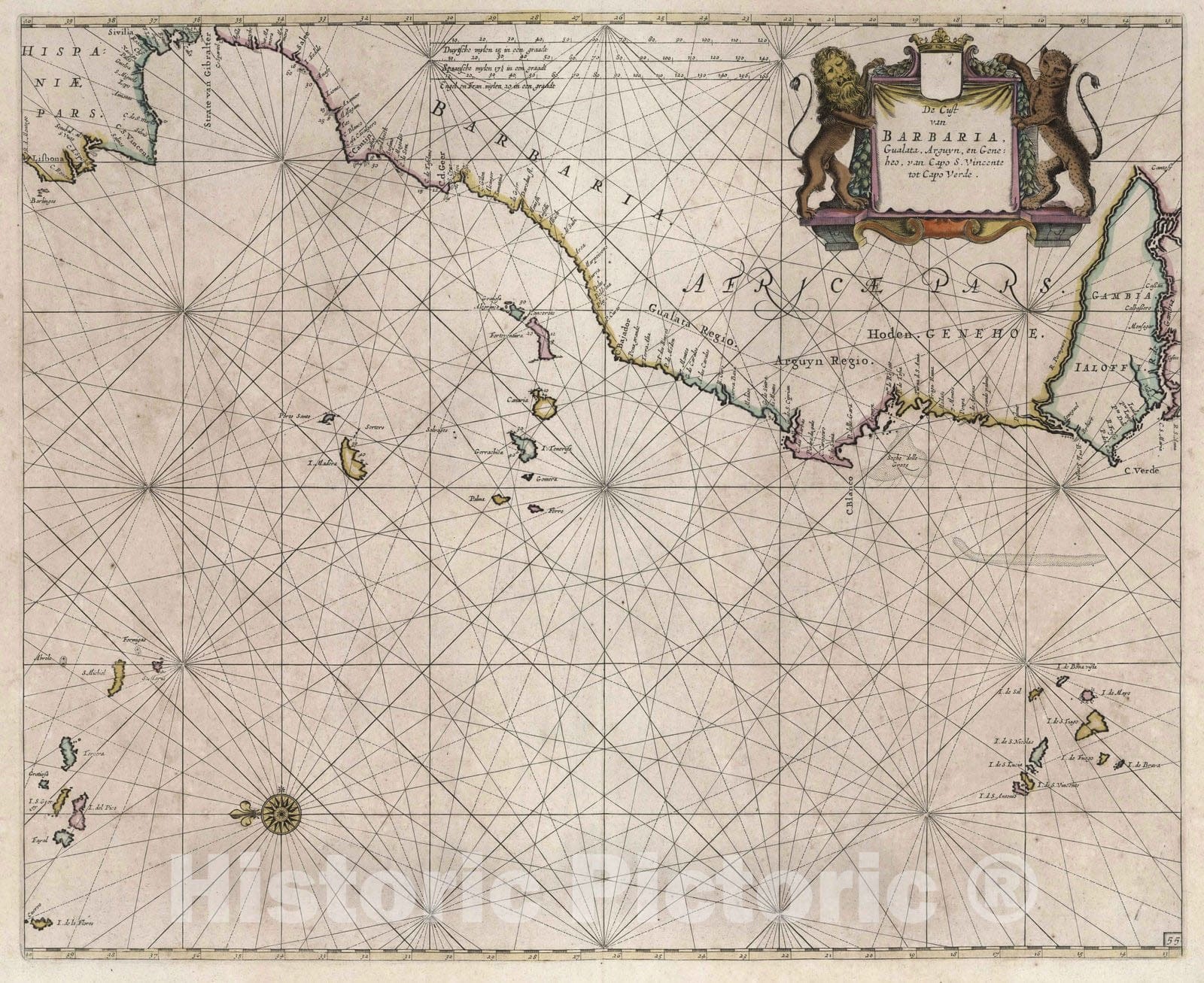 • .Historic Map : Senegal, West Africa 1667 De Cust van Barbaria. , Vintage Wall Art