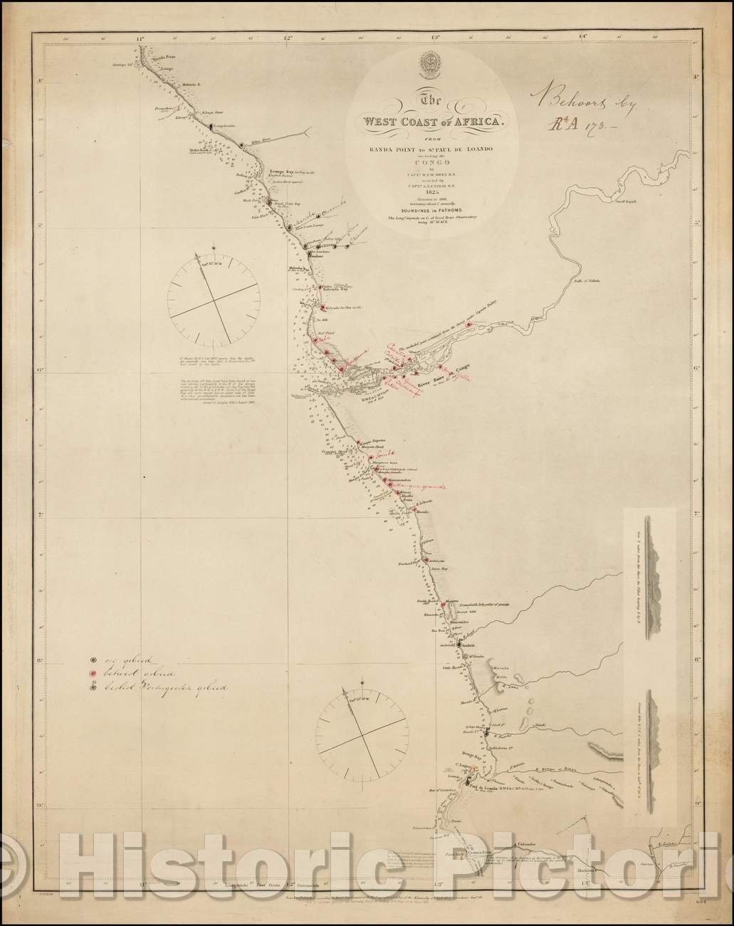Historic Map - The West Coast of Africa Banda St. Paul de Loando including the Congo. (With manuscript additions!), 1825, A. T. F. Vidal - Vintage Wall Art