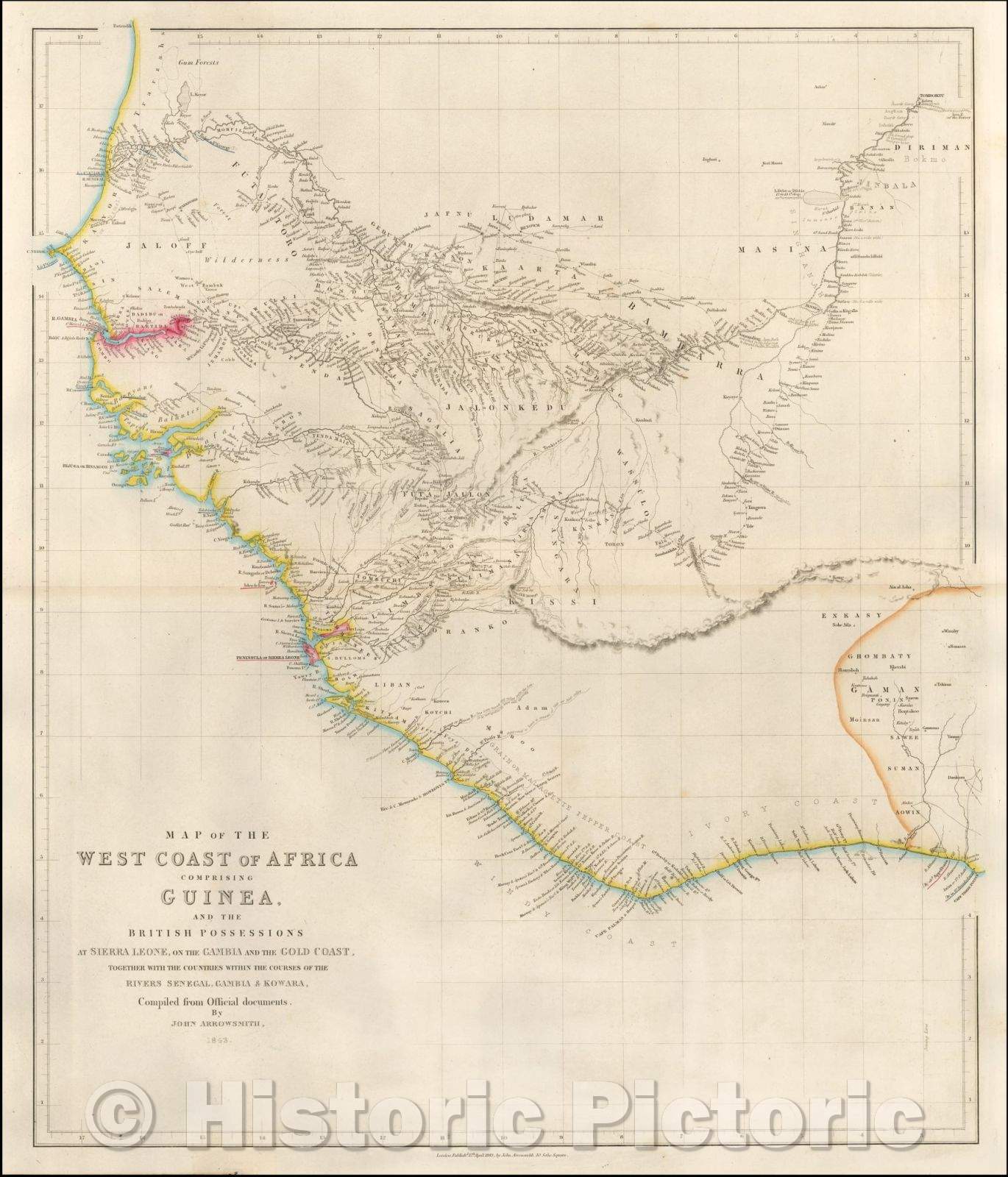 Historic Map - Map of the West Coast of Africa Comprising Guinea, an the British Possessions at Sierra Leone, on the Gambia and the Gold Coast, 1843 - Vintage Wall Art