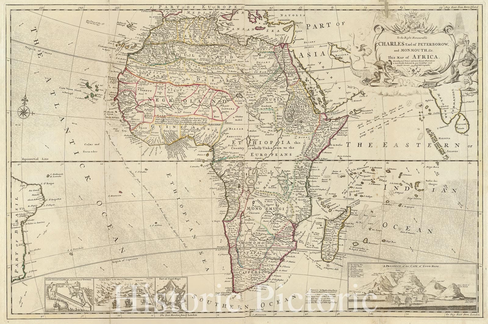 Historical Map, 1750-1759 to The Right Honourable Charles, Earl of Peterborow, and Monmouth, et Cetera. This map of Africa, According to ye Newest and Most Exact observations Reprint