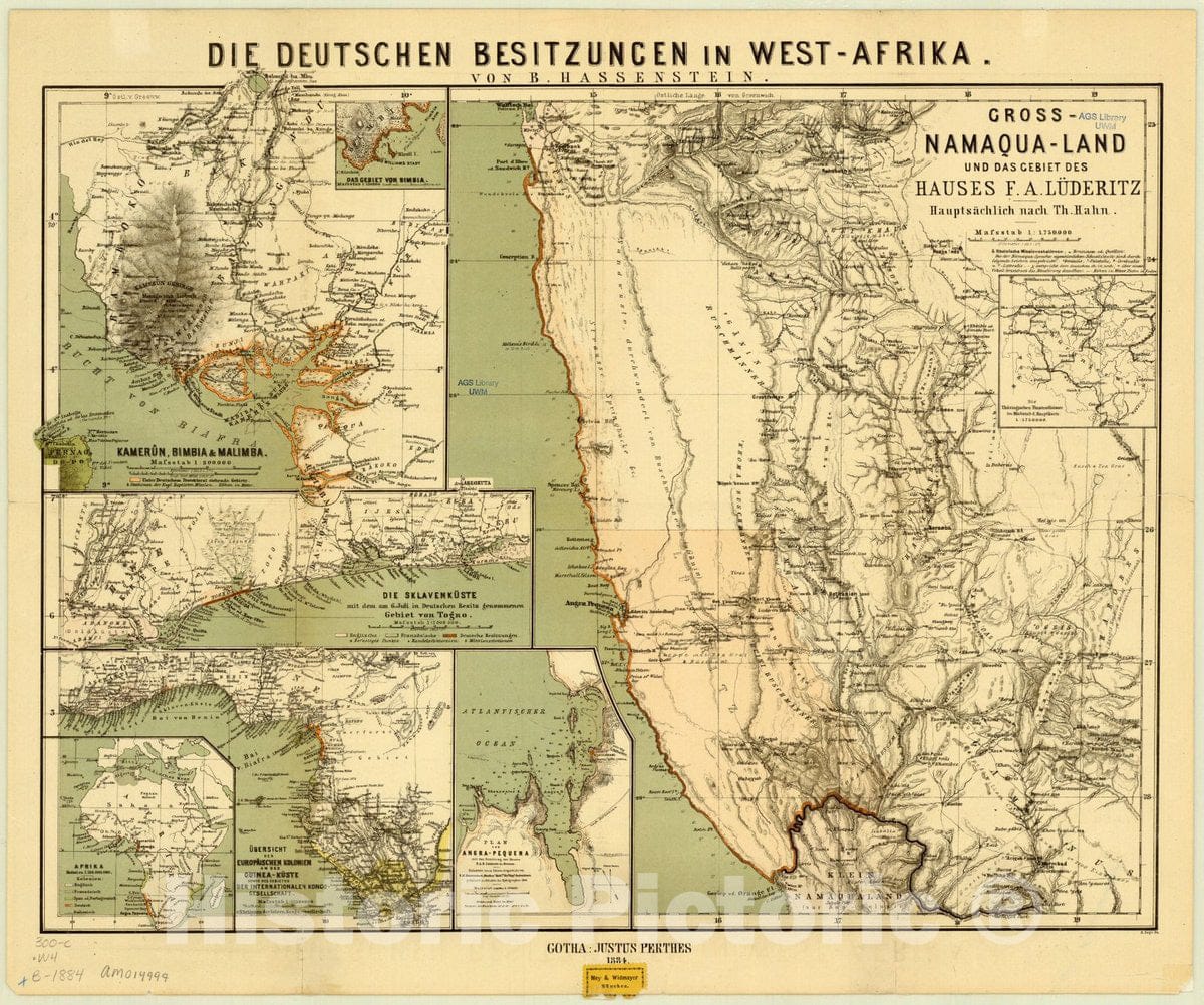 • .Map : West Africa 1884, Die deutschen Besitzungen in West-Afrika , Antique Vintage Reproduction