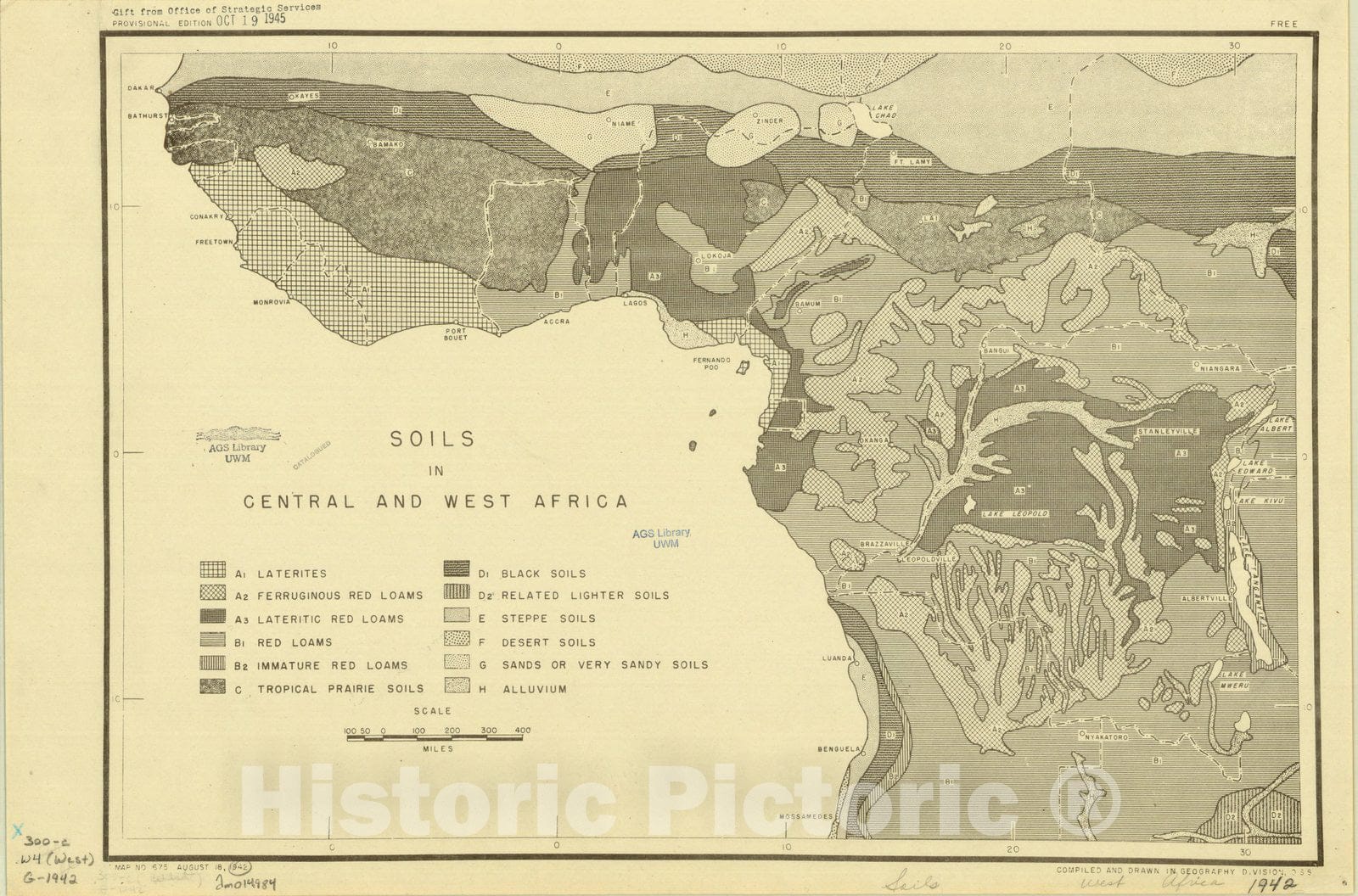 Map : West Africa soils 1942, Soils in Central and West Africa , Antique Vintage Reproduction