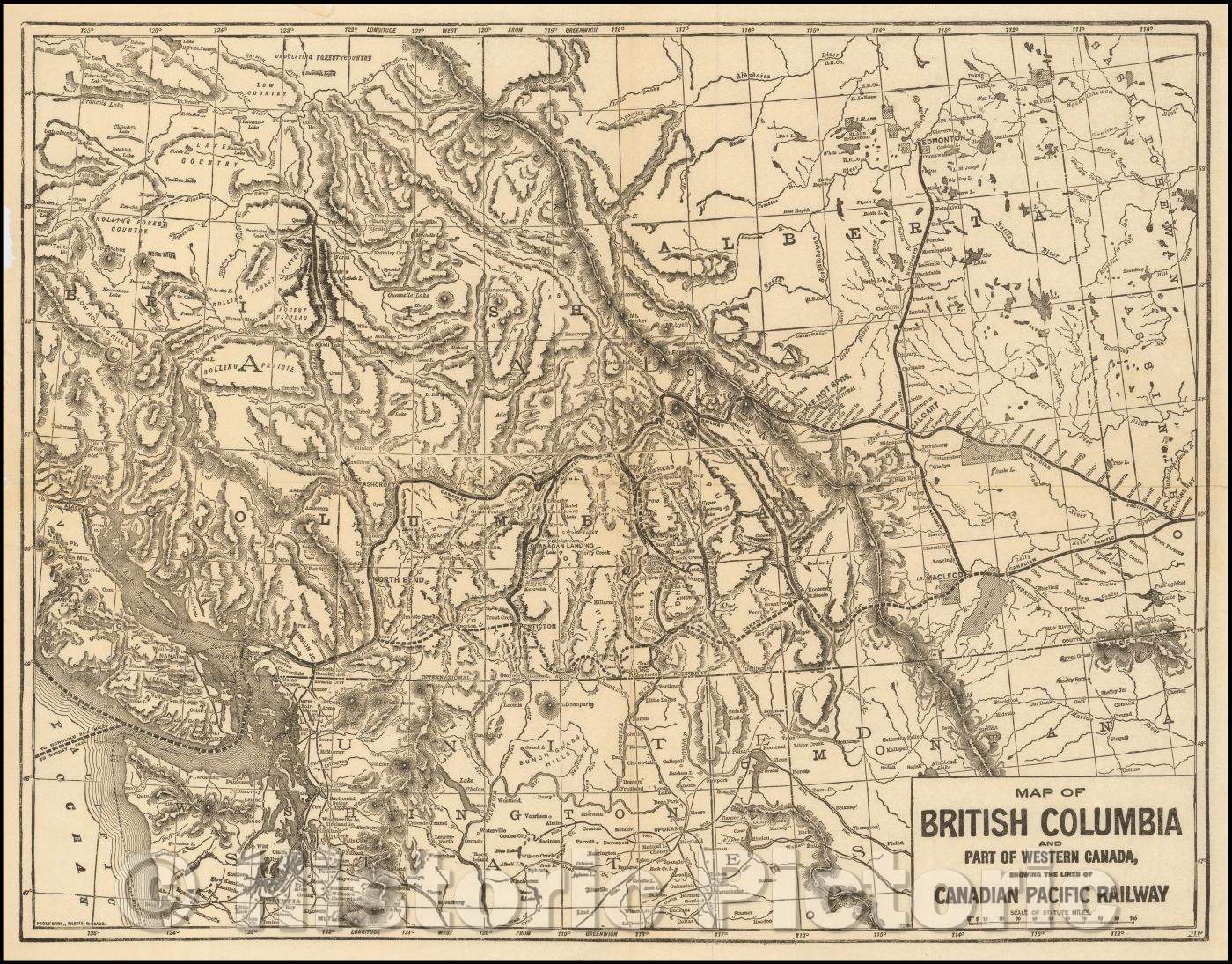 Historic Map - Map of British Columbia and Part of Western Canada, Showing the Lines of Canadian Pacific Railway, 1895, Poole Brothers - Vintage Wall Art