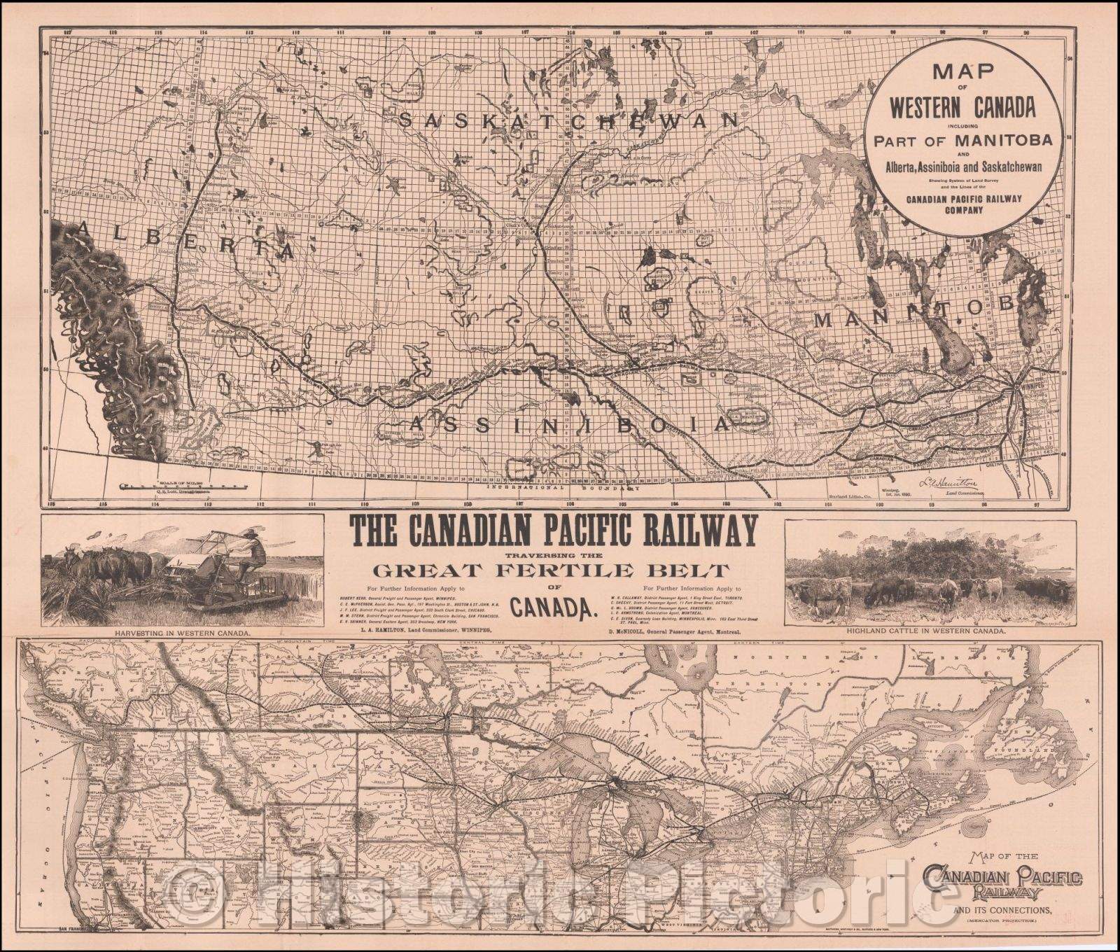 • .Historic Map - Map of Western Canada including Part of Manitoba and Alberta, Assiniboia and Saskatchewan Shewing System of Land Survey, 1892 - Vintage Wall Art