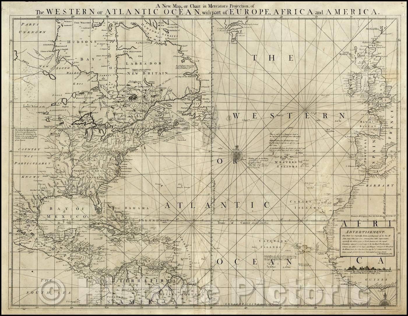 A New Map, or Chart in Mercators Projection, of The Western or Atlantic Ocean with Part of Europe, Africa and South America, 1763, William Herbert