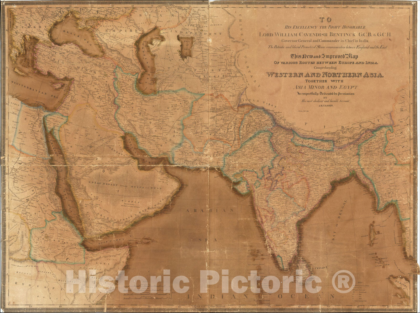 • .Historic Map : Various Routes between Europe and India, Comprehending Western and Northern Asia, Together with Asia Minor and Egypt, 1834, Jean-Baptiste Tassin, Vintage Wall Art