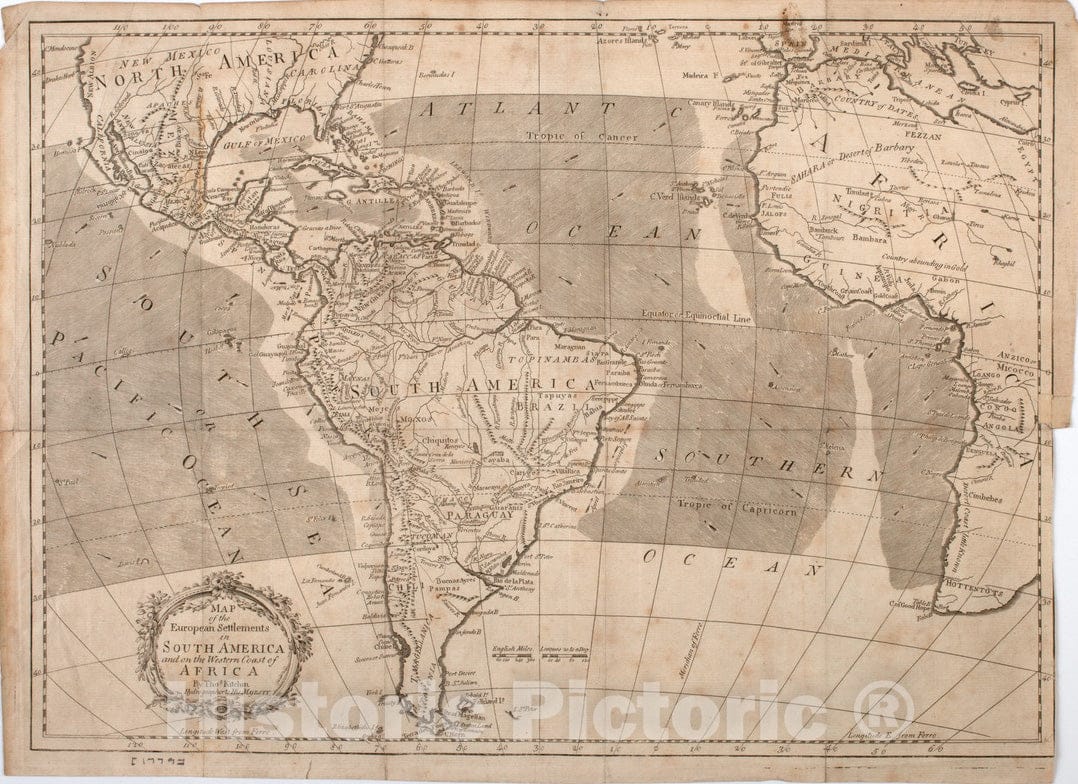 Historical Map, 1779 Map of The European settlements in South America and on The Western Coast of Africa, Vintage Wall Art