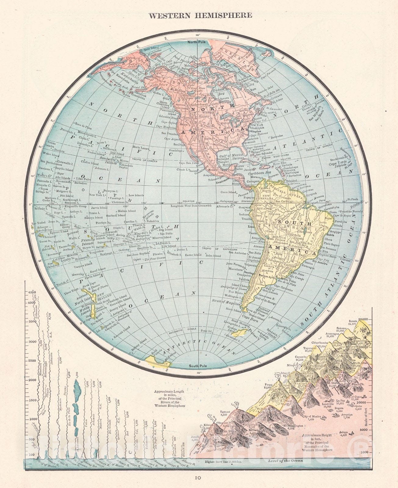 Historic Map : 1887 Western Hemispere - Eastern Hemisphere : Vintage Wall Art