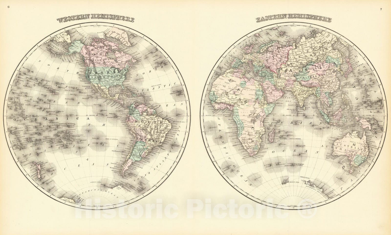Historic Map : Eastern Hemisphere with Western Hemisphere, 1865, Joseph Hutchins Colton, Vintage Wall Art