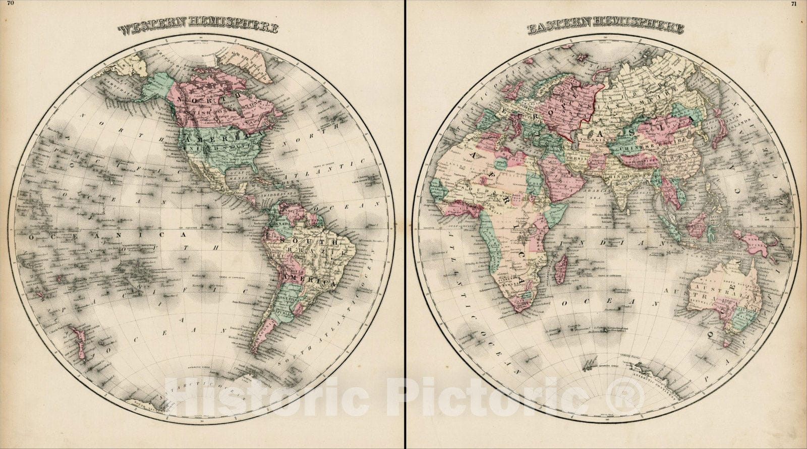 Eastern Hemisphere with Western Hemisphere, 1873, O.W. Gray