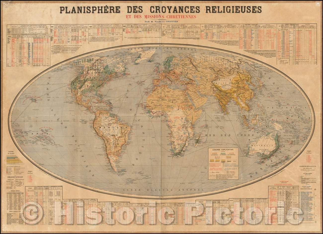 Historic Map - Planisphere Des Croyances Religieuses et des Missions Chretiennes Par M. Valerien Groffier. :: Western Hemisphere in mirror image format, 1882 - Vintage Wall Art