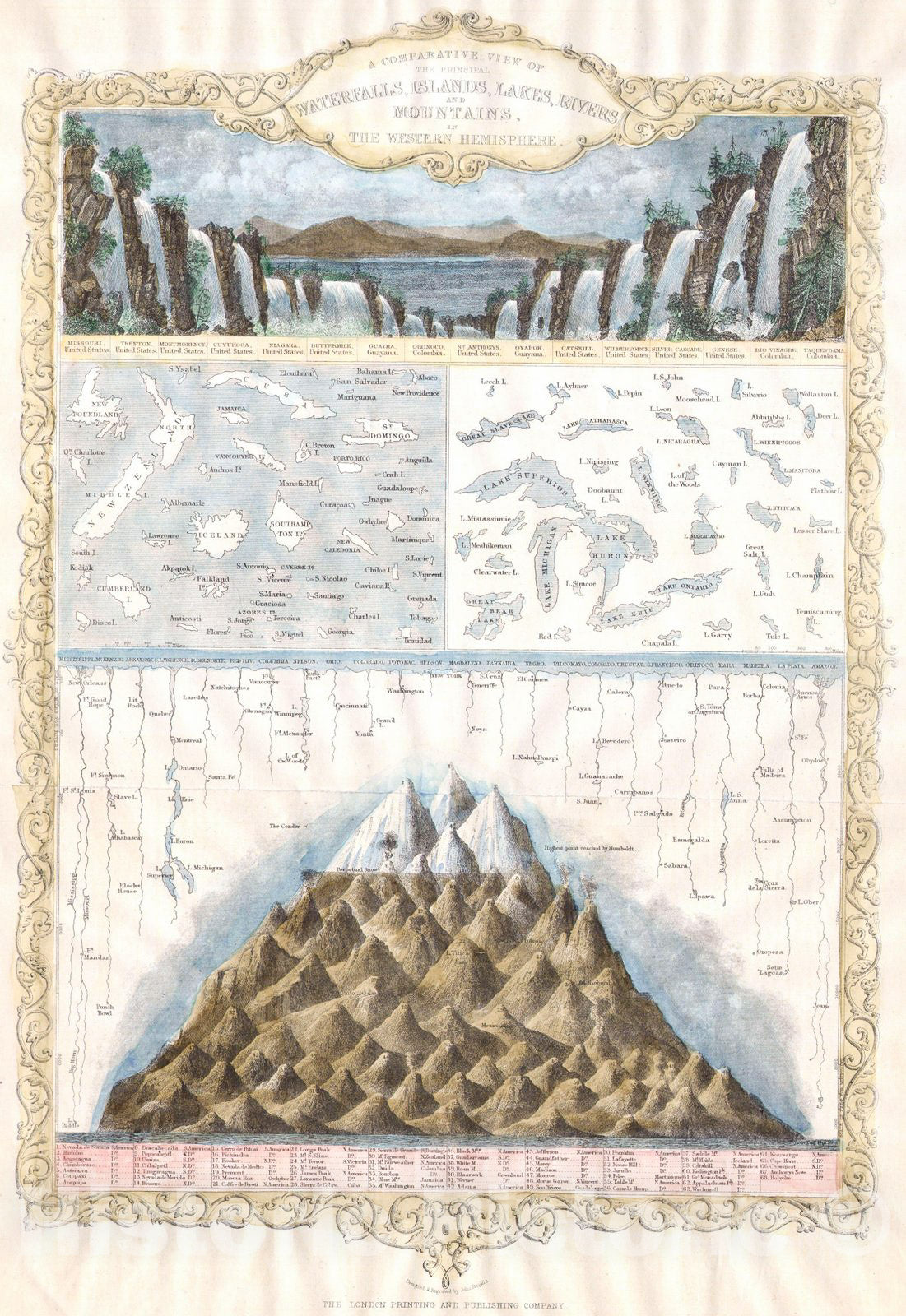 Historic Map : Tallis Maps of The Mountains, Rivers, Waterfalls & Islands of The Western Hemisphere, 1850, Vintage Wall Art