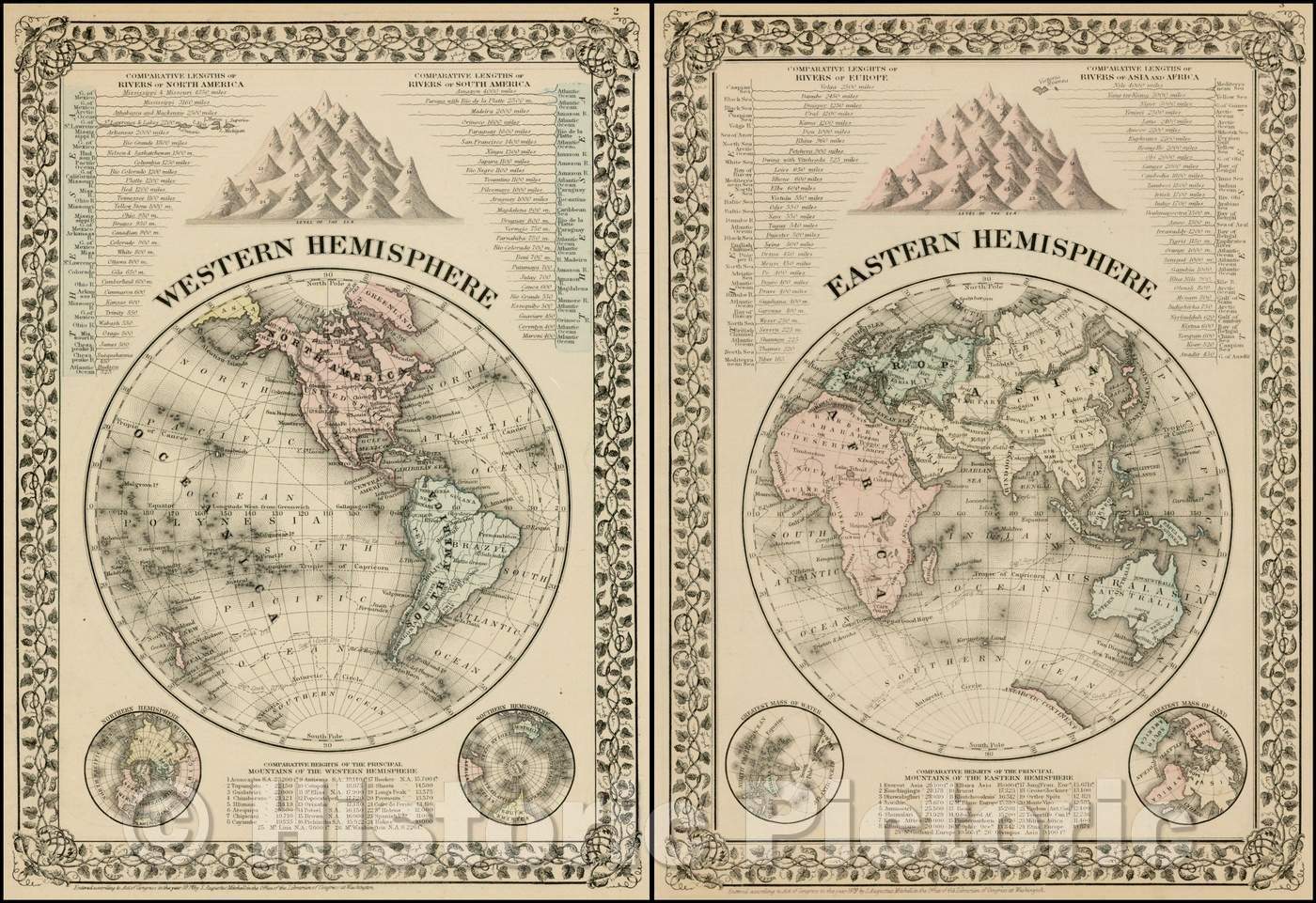 Historic Map - Western Hemisphere and Eastern Hemisphere, 1871, Samuel Augustus Mitchell Jr. - Vintage Wall Art