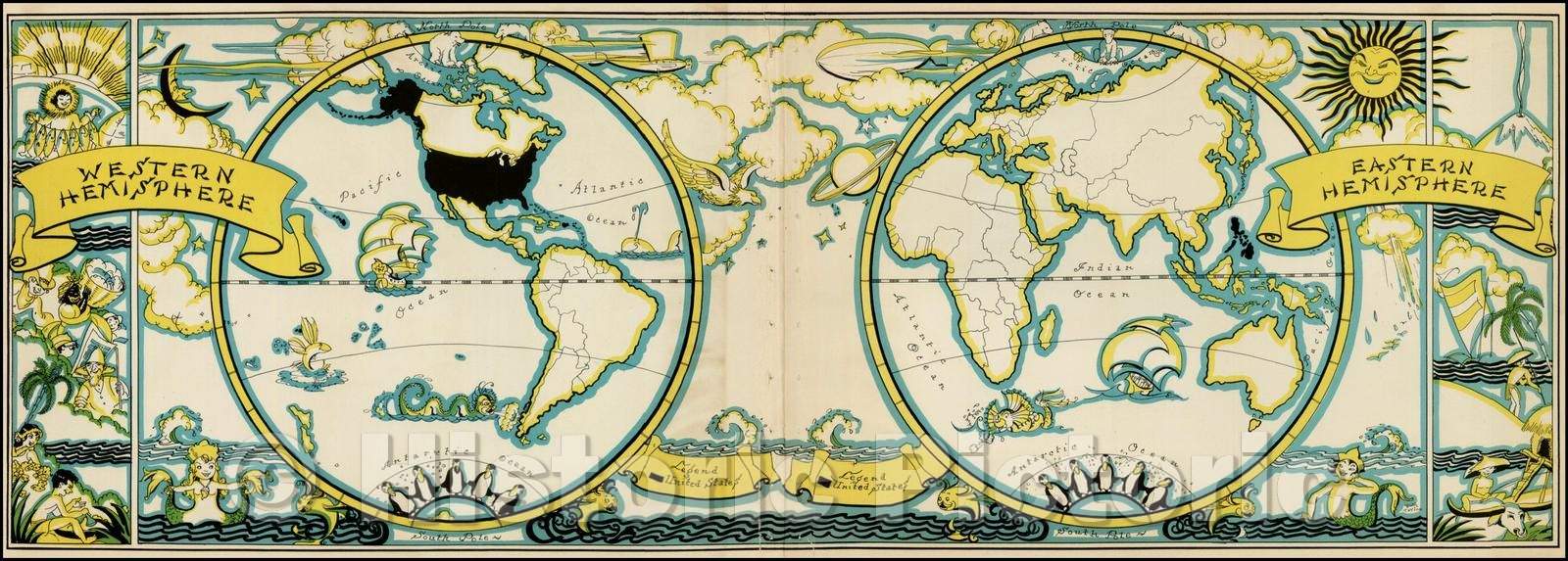 Historic Map - Western Hemisphere and Eastern Hemisphere, 1935, Ruth Taylor White - Vintage Wall Art