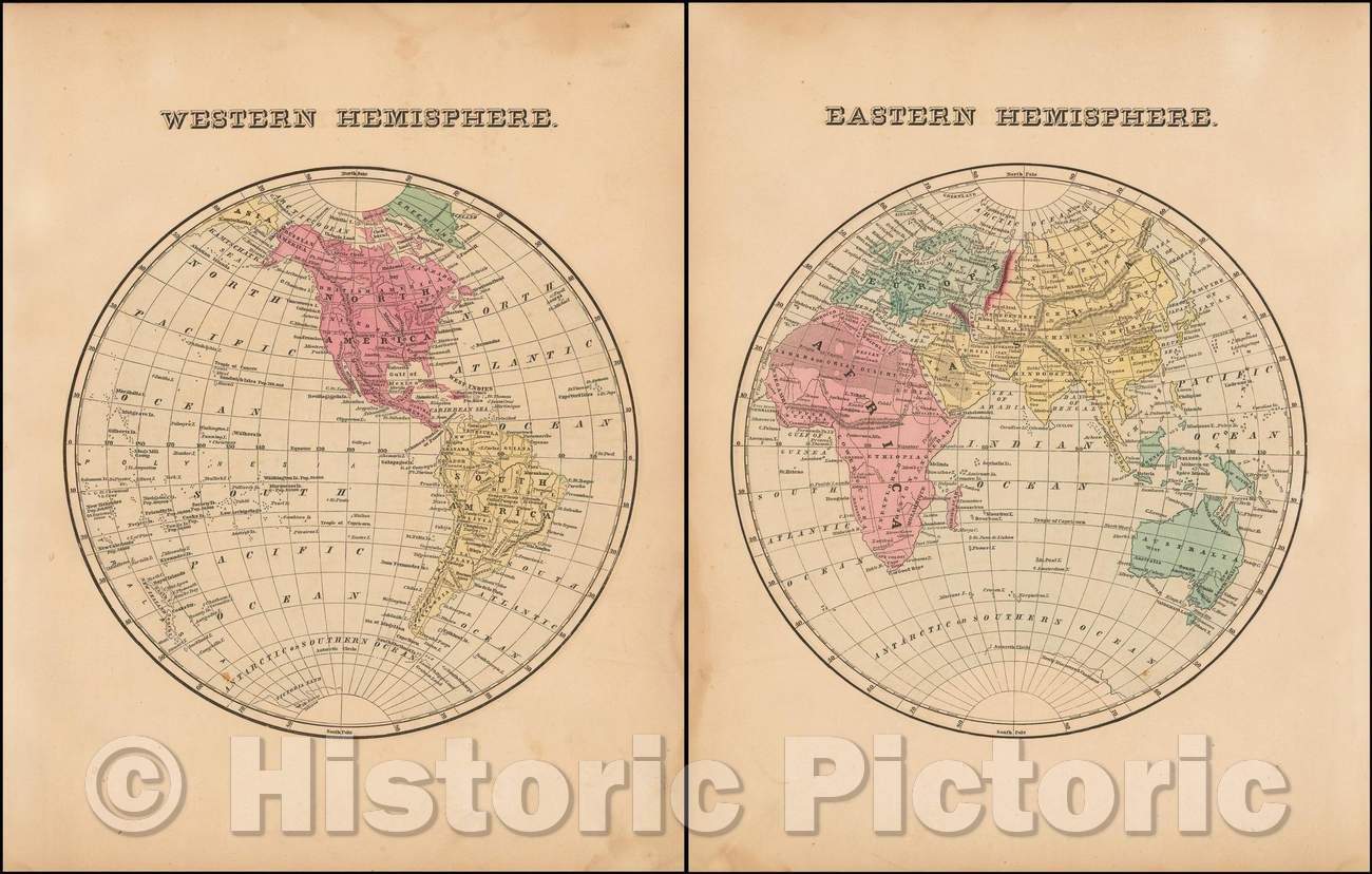• .Historic Map - Western Hemisphere with Eastern Hemisphere, 1856, Samuel Morse - Vintage Wall Art
