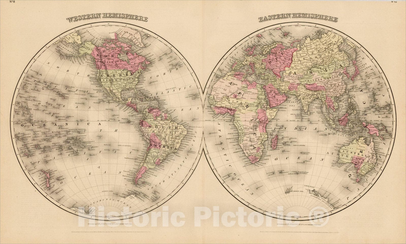 Historic Map : Western Hemisphere with Eastern Hemisphere, 1870, G.W. & C.B. Colton, Vintage Wall Art