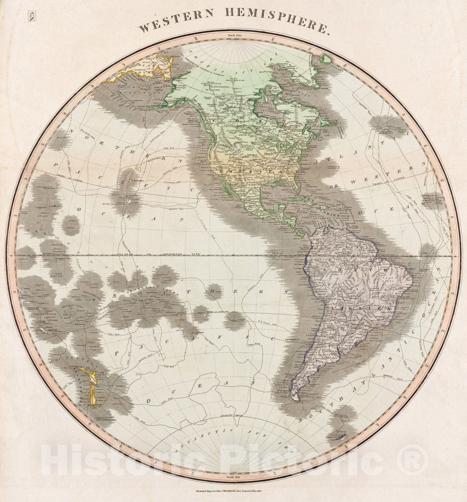• .Historical Map, 1815 Western hemisphere, Vintage Wall Art