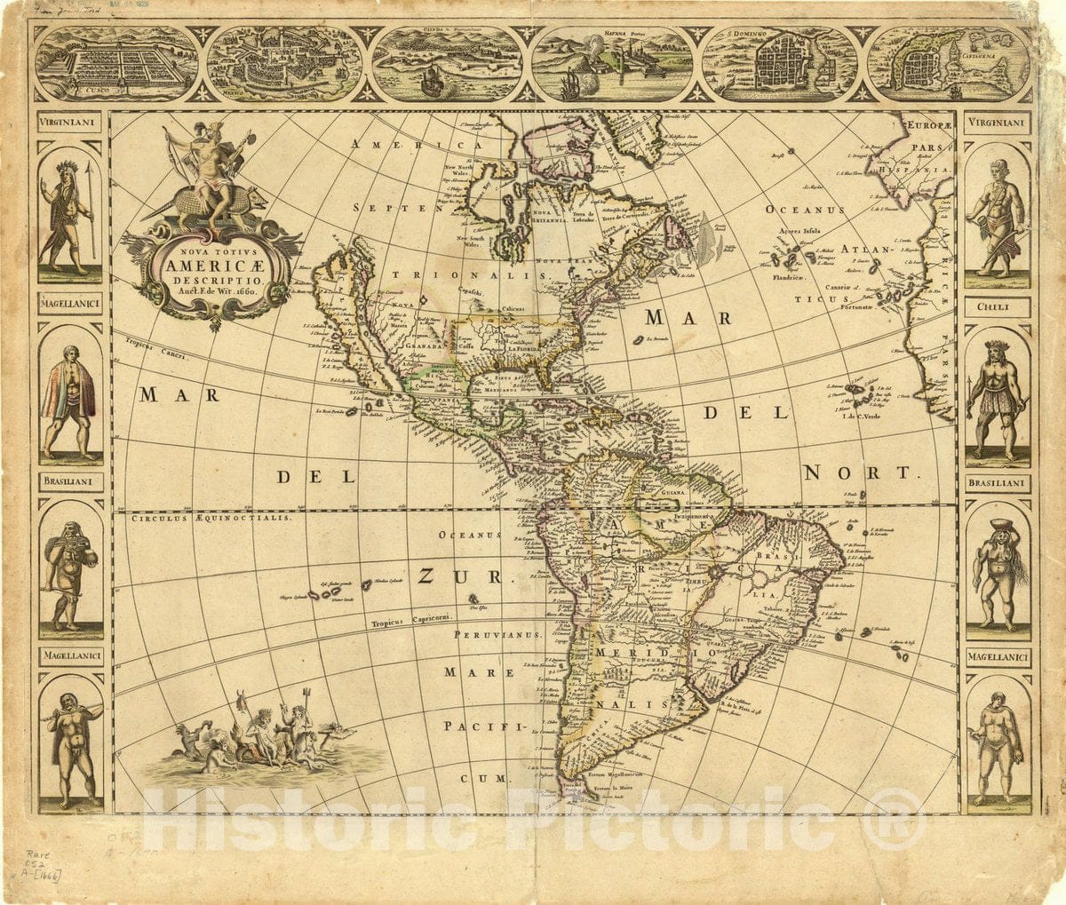 • .Map : Western Hemisphere 1666, Nova totivs Americae descriptio , Antique Vintage Reproduction