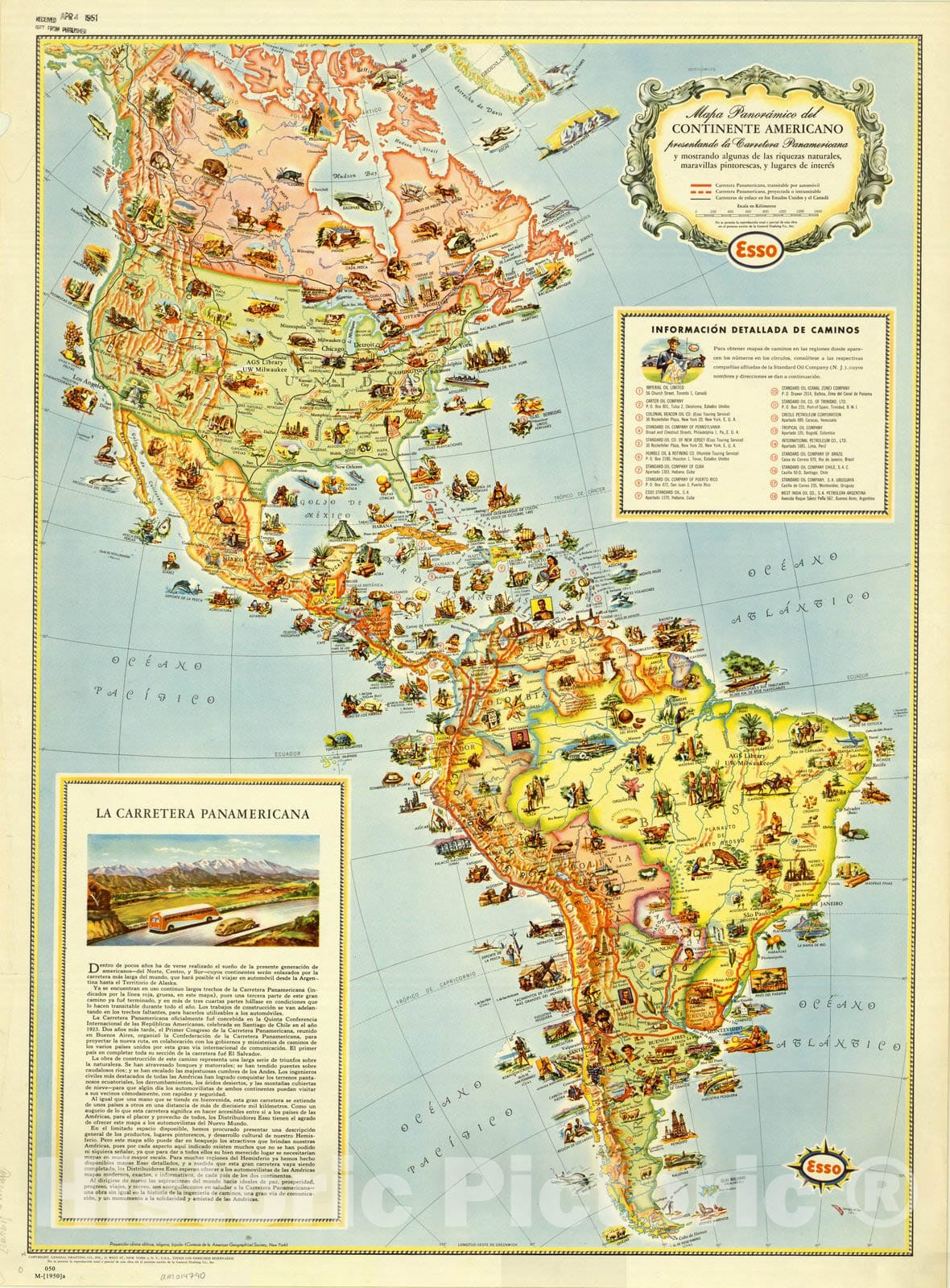 Map : Western Hemisphere 1950, Mapa panoramico del continente Americano : presentando la carretera Panamericana, Antique Vintage Reproduction