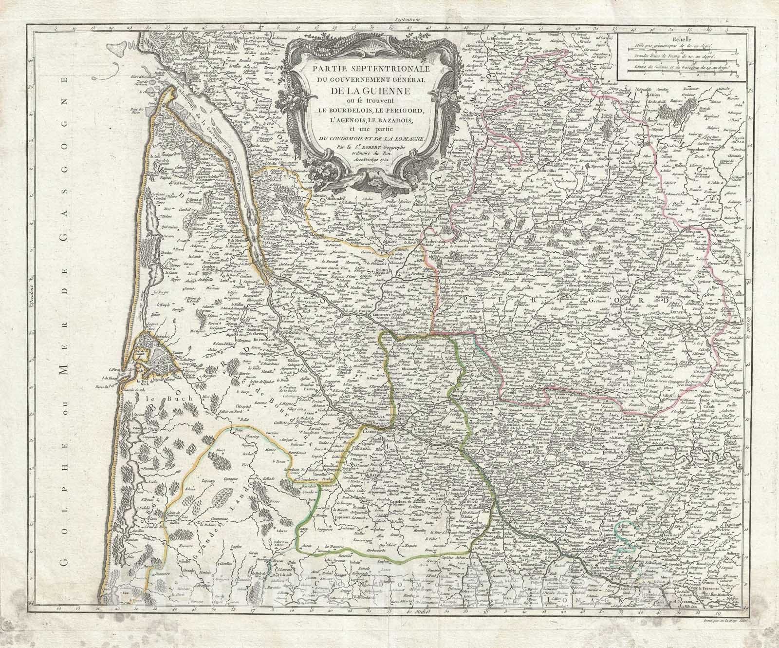 The Aquitaine Region: Bourdelois, Perigord, Gironde "Bordeaux Wine Region", Fra, Vaugondy, 1752