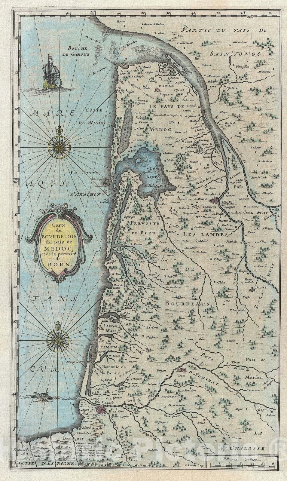 Historic Map : Bordeaux and Medoc "Wine Regions", Blaeu, 1667, Vintage Wall Art