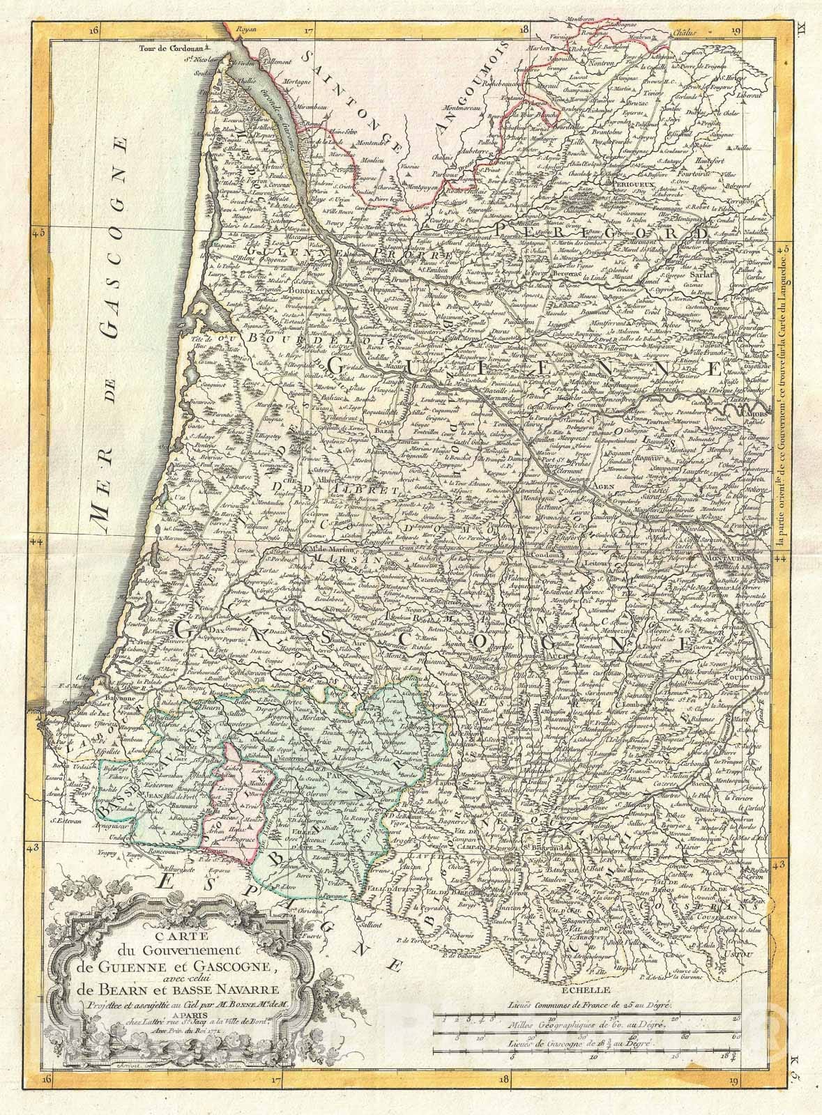 Gironde and Gascony, France "Bordeaux Wine", Bonne, 1771