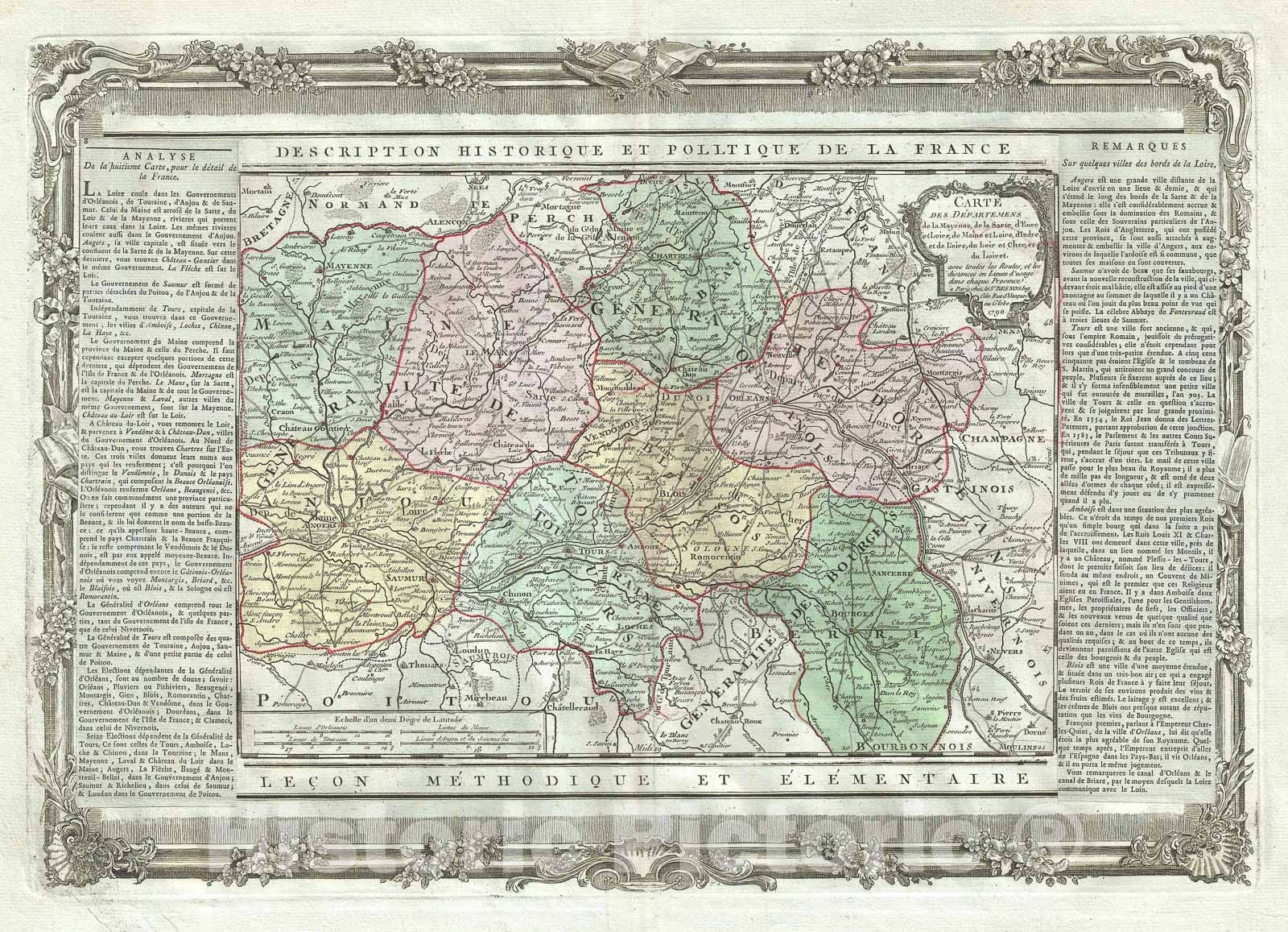 Historic Map : The Pays de la Loire, France "Loire Wine", Desnos, 1786, Vintage Wall Art