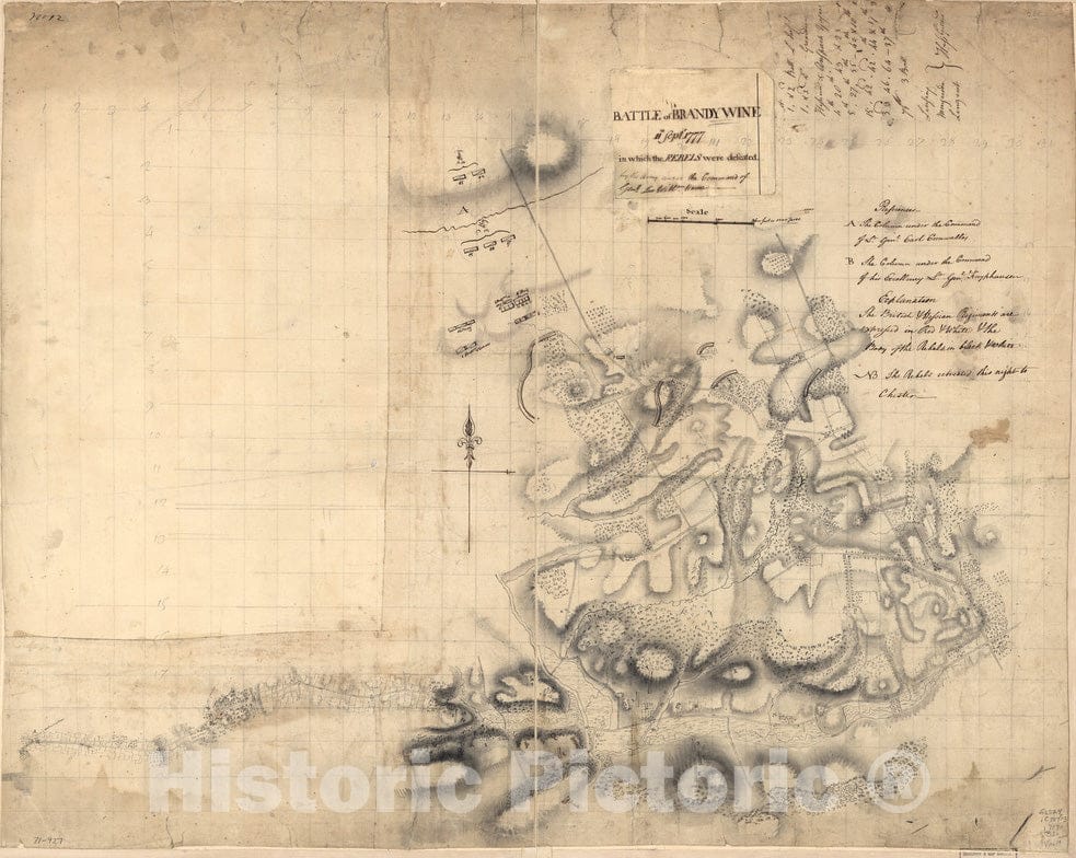 • .Historical Map, Battle of Brandywine, 11th Septr. 1777 : in which The Rebels were Defeated by The Army Under The Command of Genl. Sir Willm. Howe, Vintage Wall Art